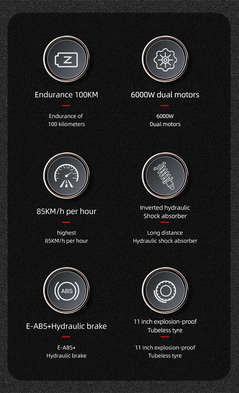 6000W BOYUEDA S3 11''E-Scooter 60V 38AH Folding E- Scooter Offroad seat 75Mile