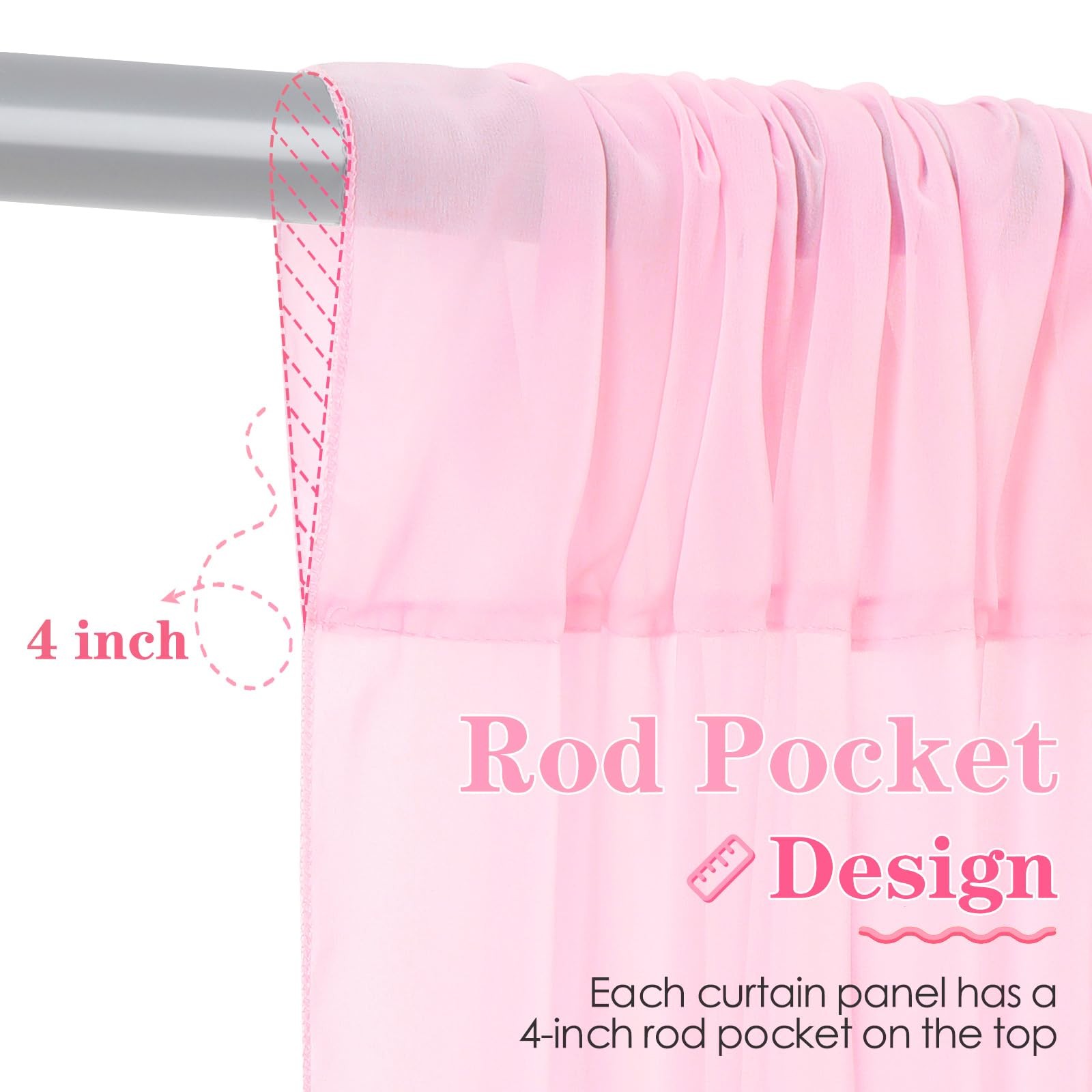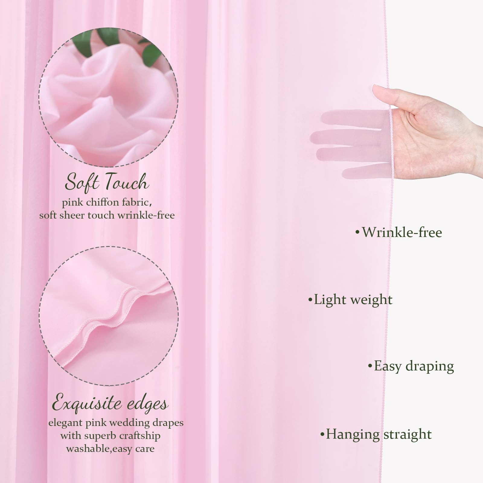 Sheer Curtain Drapes 10ftx8ft Pink Chiffon Fabric Backdrop for Wedding