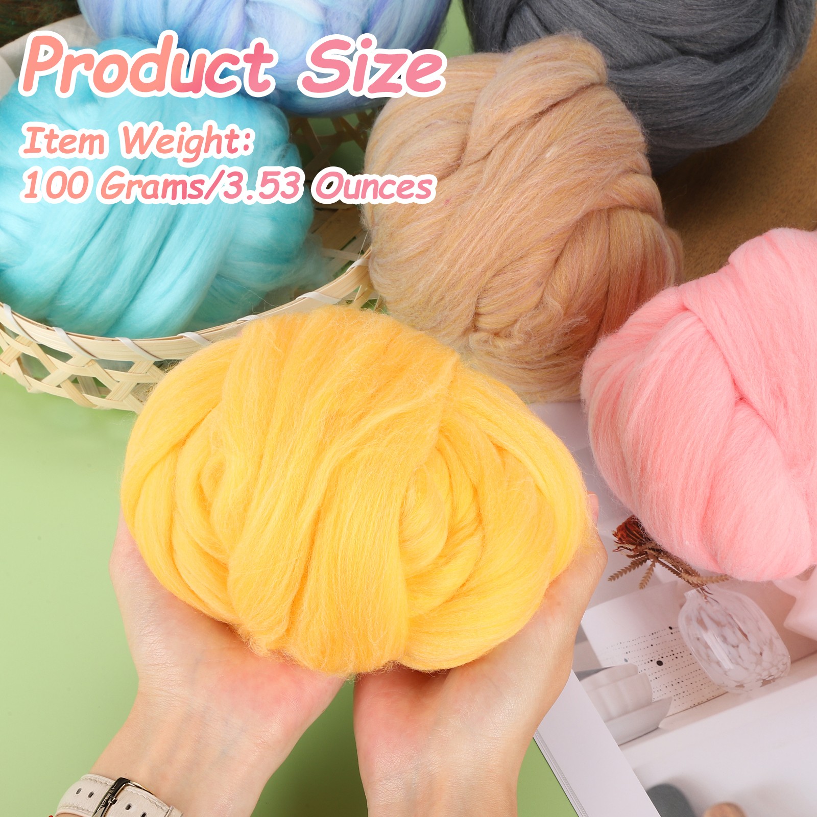 Wool Roving Yarn, 100G/3.53OZ Felting Wool Pure Roving Yarn, Light Gray