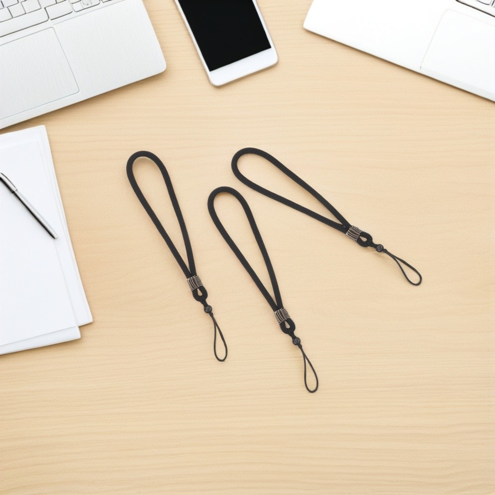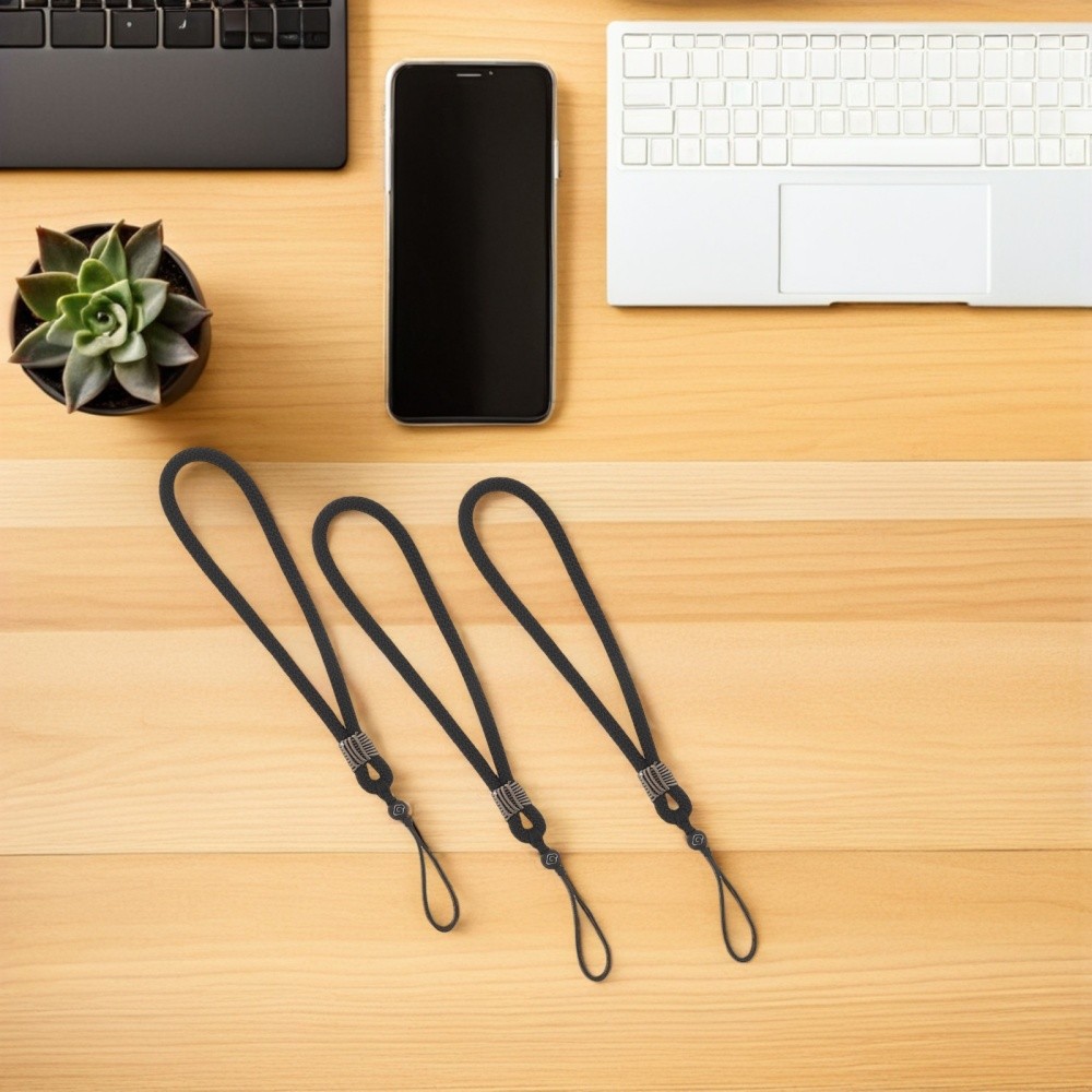 3pcs Short Braided Phone Wrist Strap Black Handcrafted Mobile Phone Wristlet