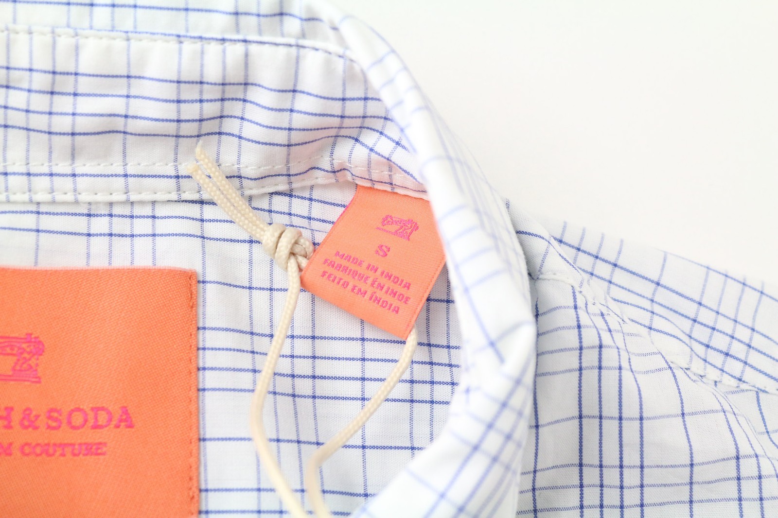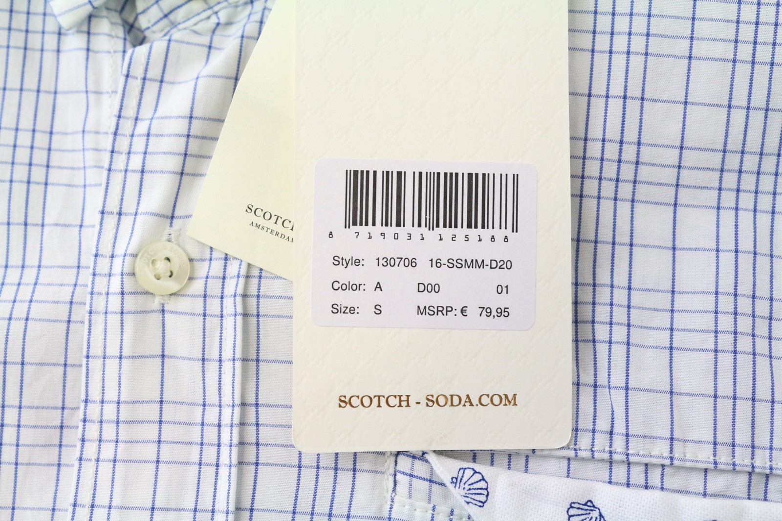 SCOTCH SODA Ams Couture Men's Shirt S Light Blue Slim Cotton Checked Style