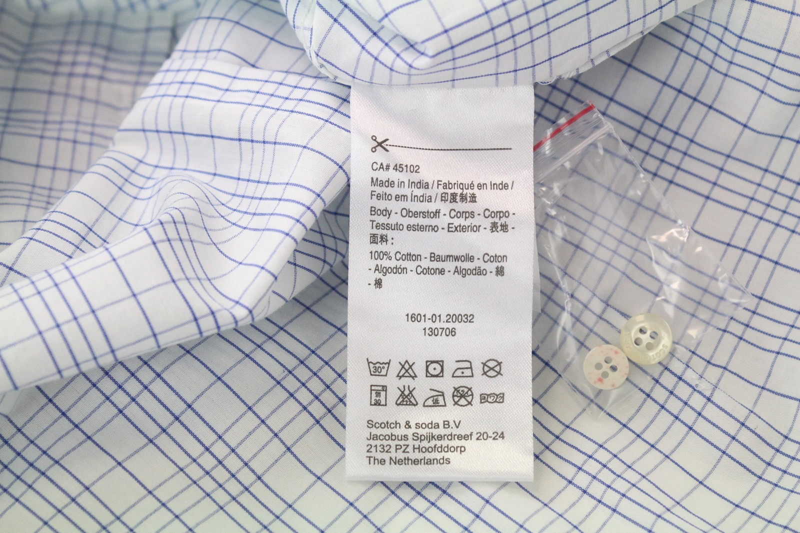 как выглядит SCOTCH SODA Ams Couture Mens Shirt S Light Blue Slim Cotton Checked Style фото