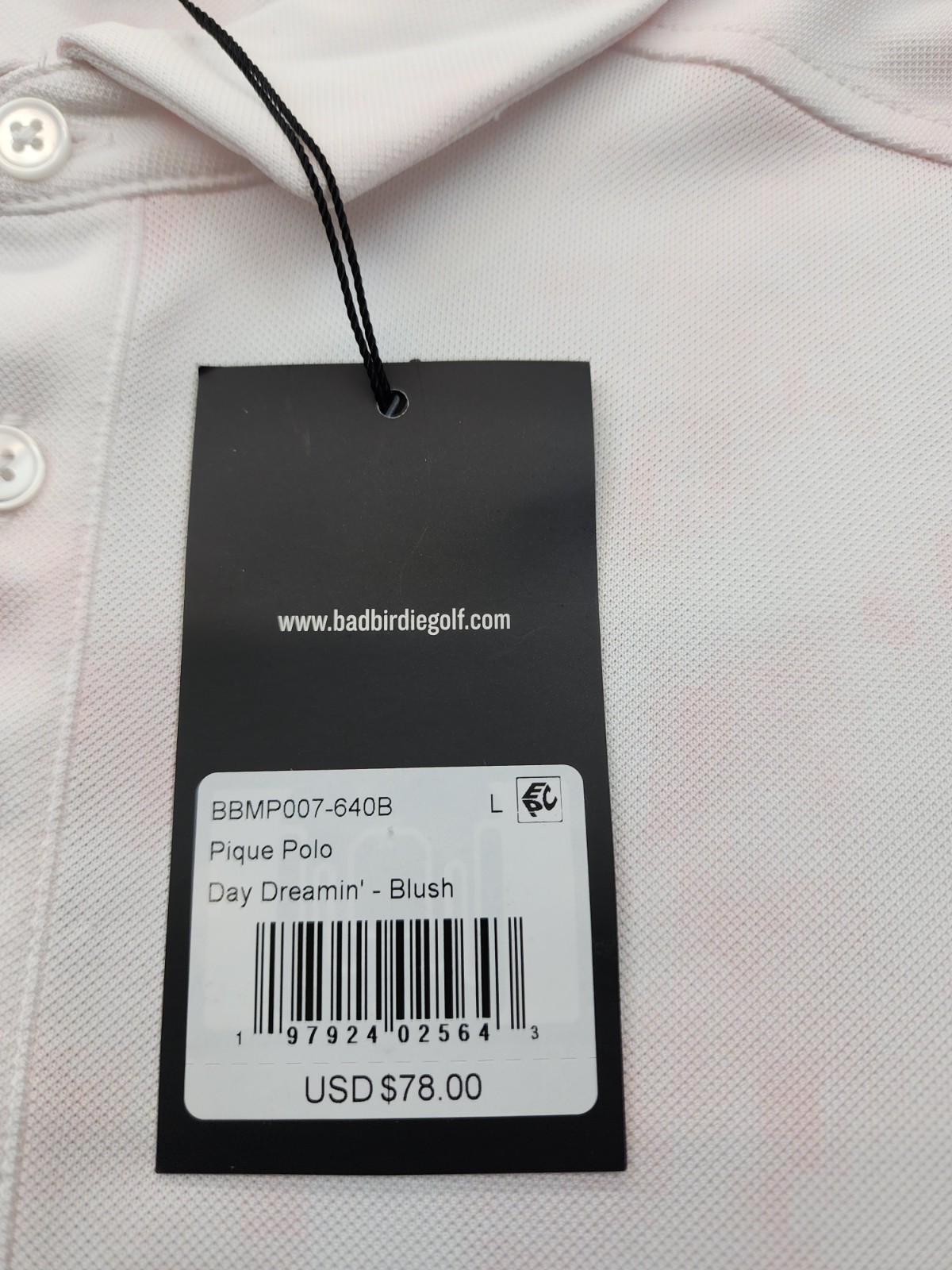 как выглядит NEW Mens Bad Birdie Golf Performance Polo Shirt Day Dreamin Cotton Candy LARGE фото