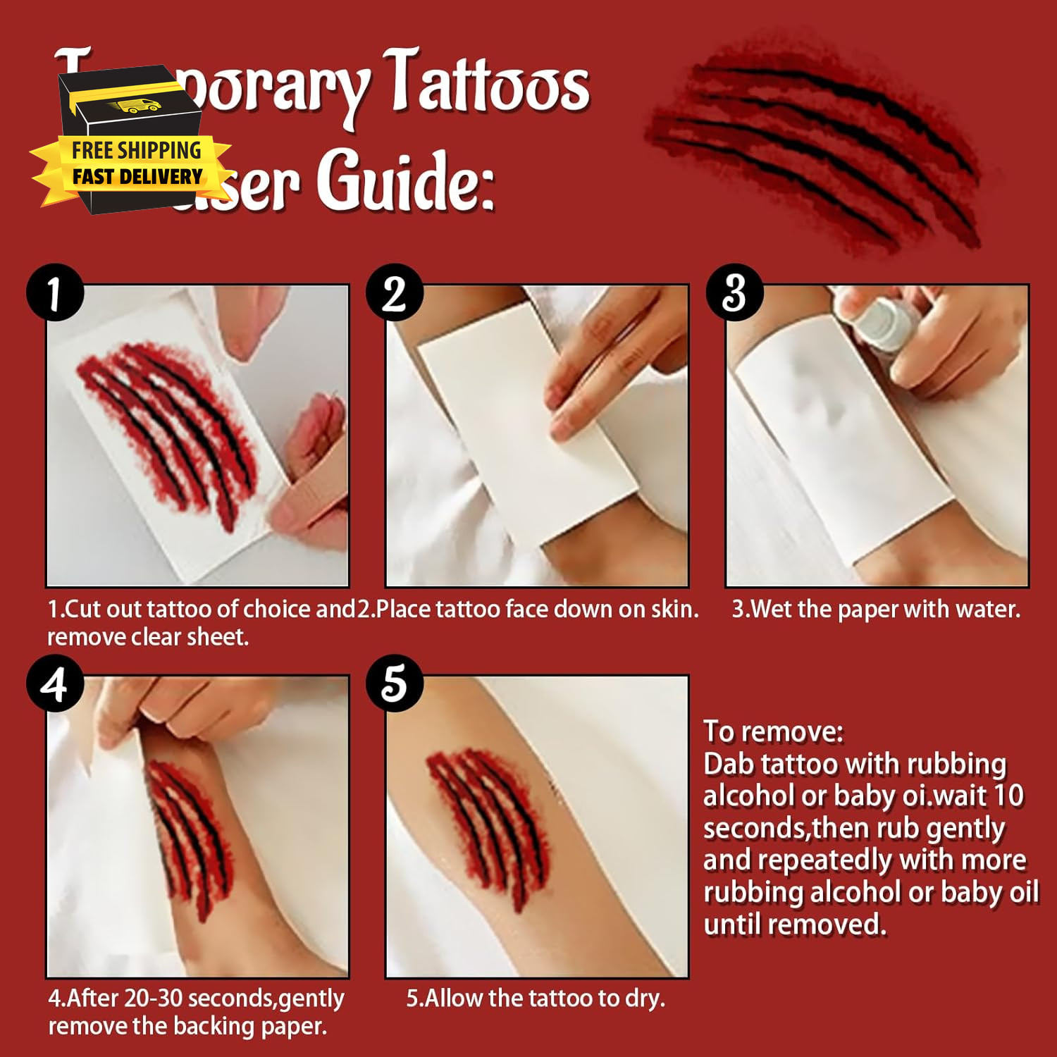 265 PCS 40 Sheets Fake Scars Temporary Tattoos, Horror Realistic Wound Stitch Fa