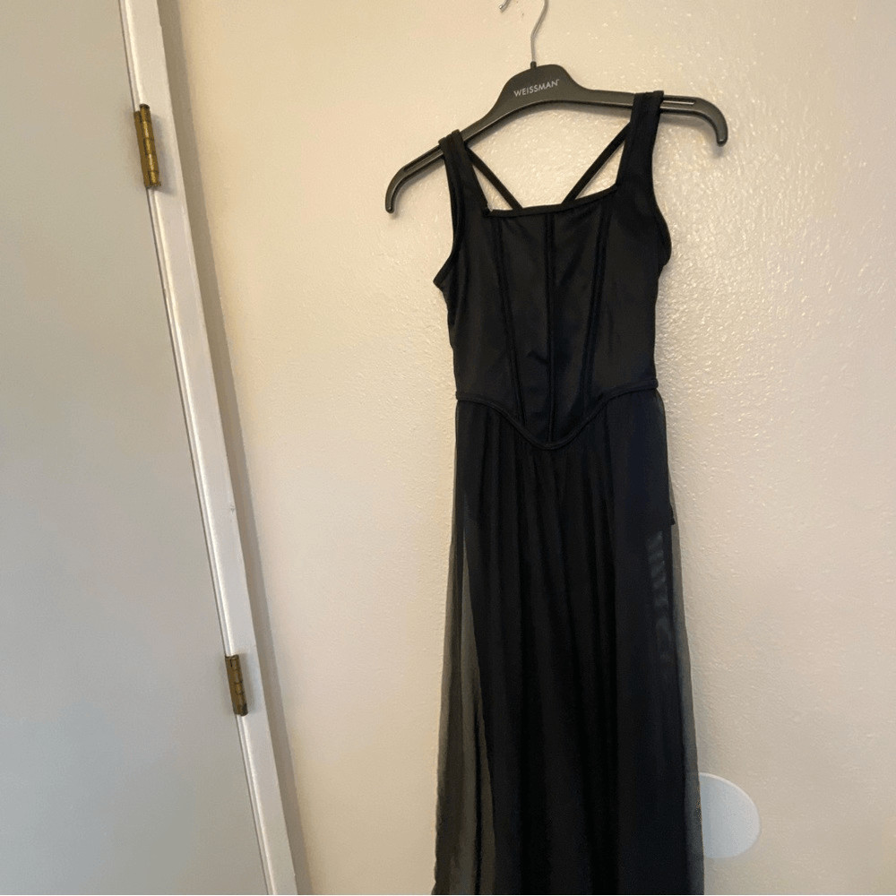 как выглядит Weissman dance costume Black maxi dress ribbed Freehand 16400 MC-Medium child фото
