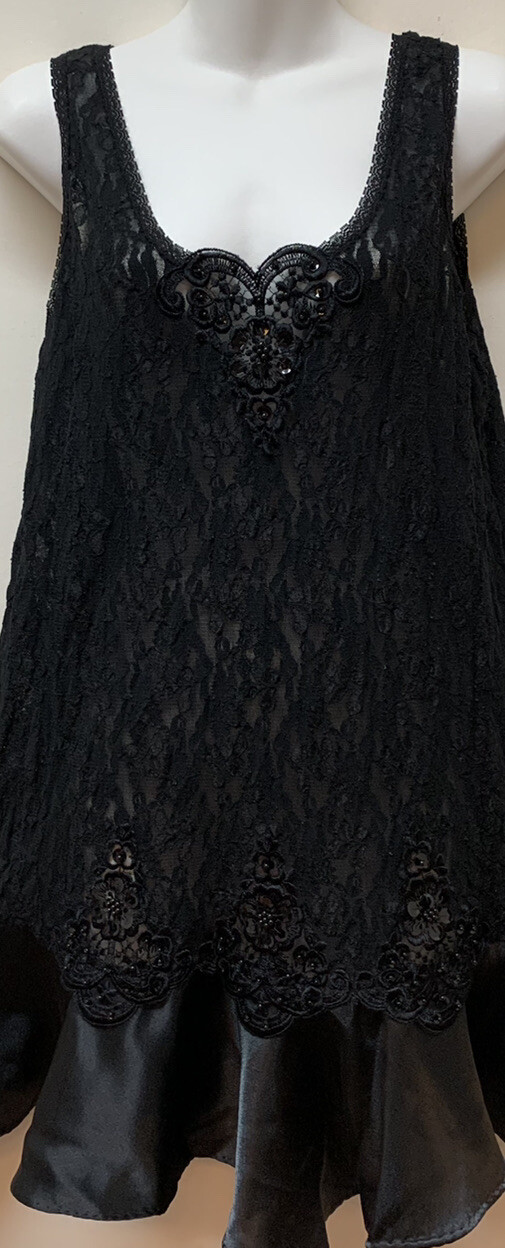 Vintage Cinema Etoile Nylon Black Lace Ruffle Short Nightgown Chemise L NEW NOS