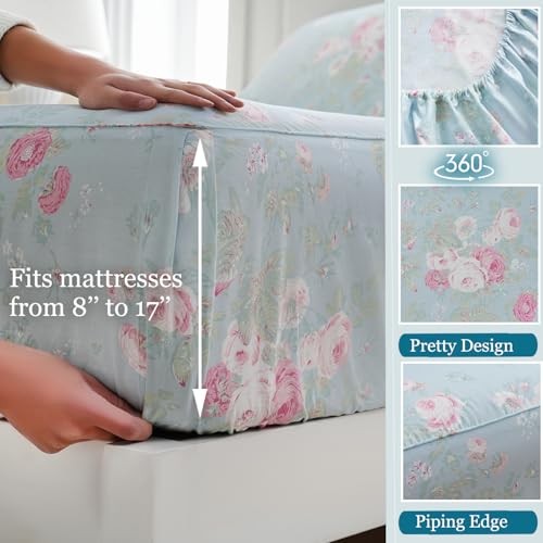 Blue Floral Sheets Set Size 100 Cotton Pink Flowers Bed King Blue Countryside