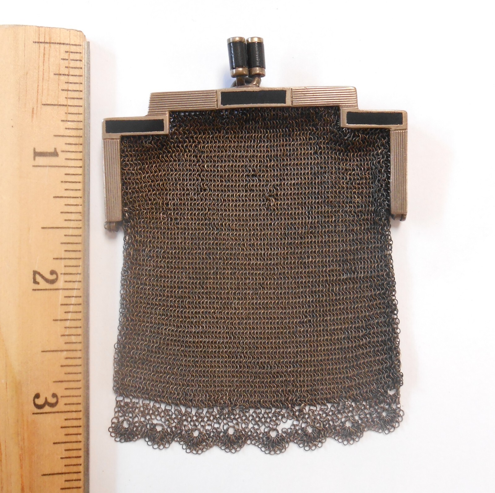 как выглядит Art Deco German Hallmarked 800 Silver Mesh Black Enamel Chatelaine Coin Purse фото