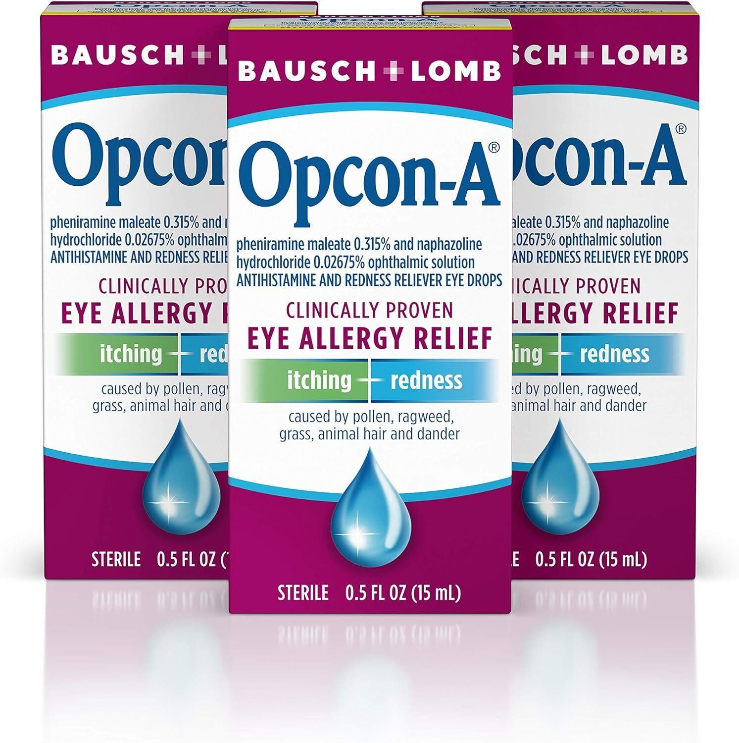 Opcon-a Allergy Eye Drops by Bausch Lomb, for Itch and Redness Relief, Red and