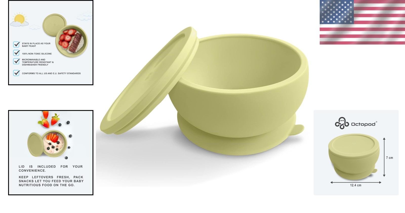 как выглядит Suction-Base Silicone Baby Bowl with Lid - 8oz Ergonomic Feeding Essential фото