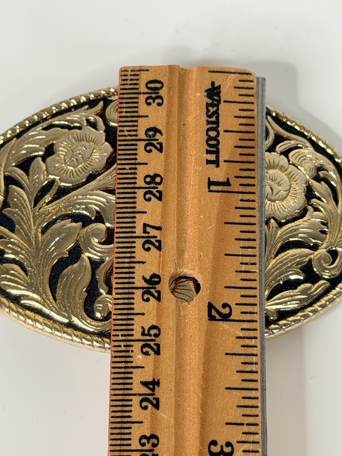как выглядит Western Plain Floral Belt Buckle Gold and Black Cowboy Cowgirl Rancher Style VTG фото