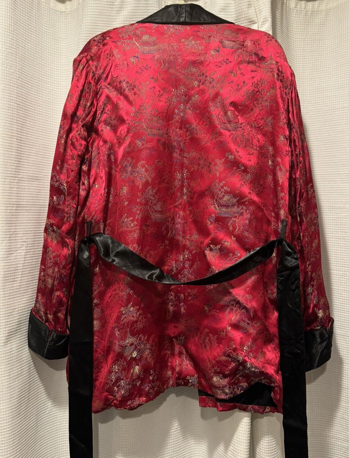 как выглядит Vtg Oriental Brand Robe Men s Asian Satiny Rayon Belted Romantic Red Black 48 фото