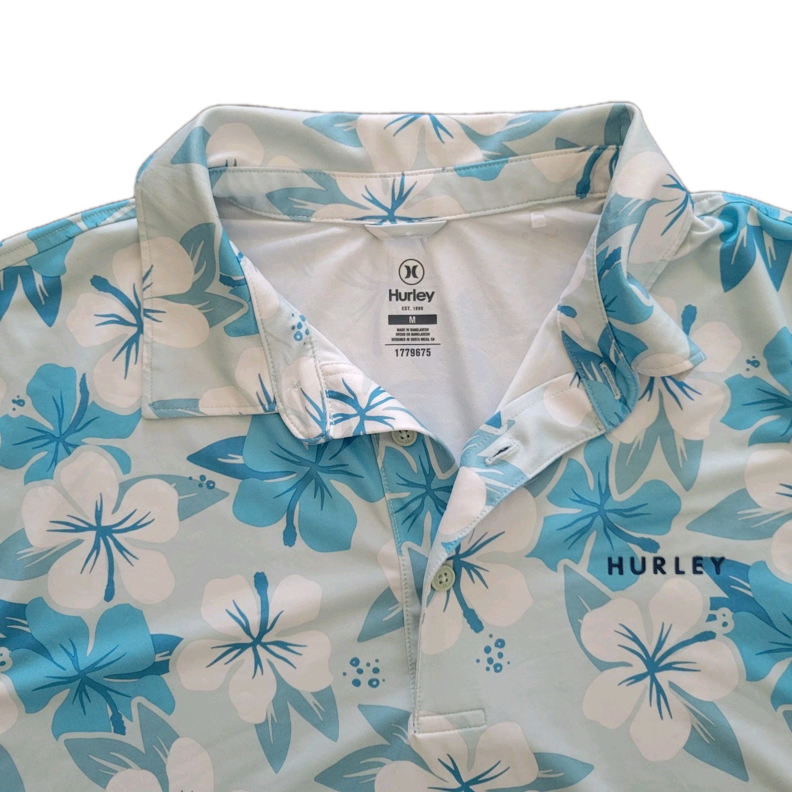 как выглядит Hurley Mens Sz M Polo Golf Shirt Hawaiian Aloha Floral Stretch Quick Dry фото