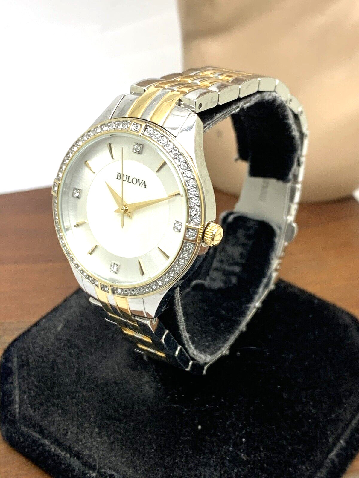 Bulova Women's Watch 98L273 Mother of Pearl Dial Crystal Accent Two Tone Steel