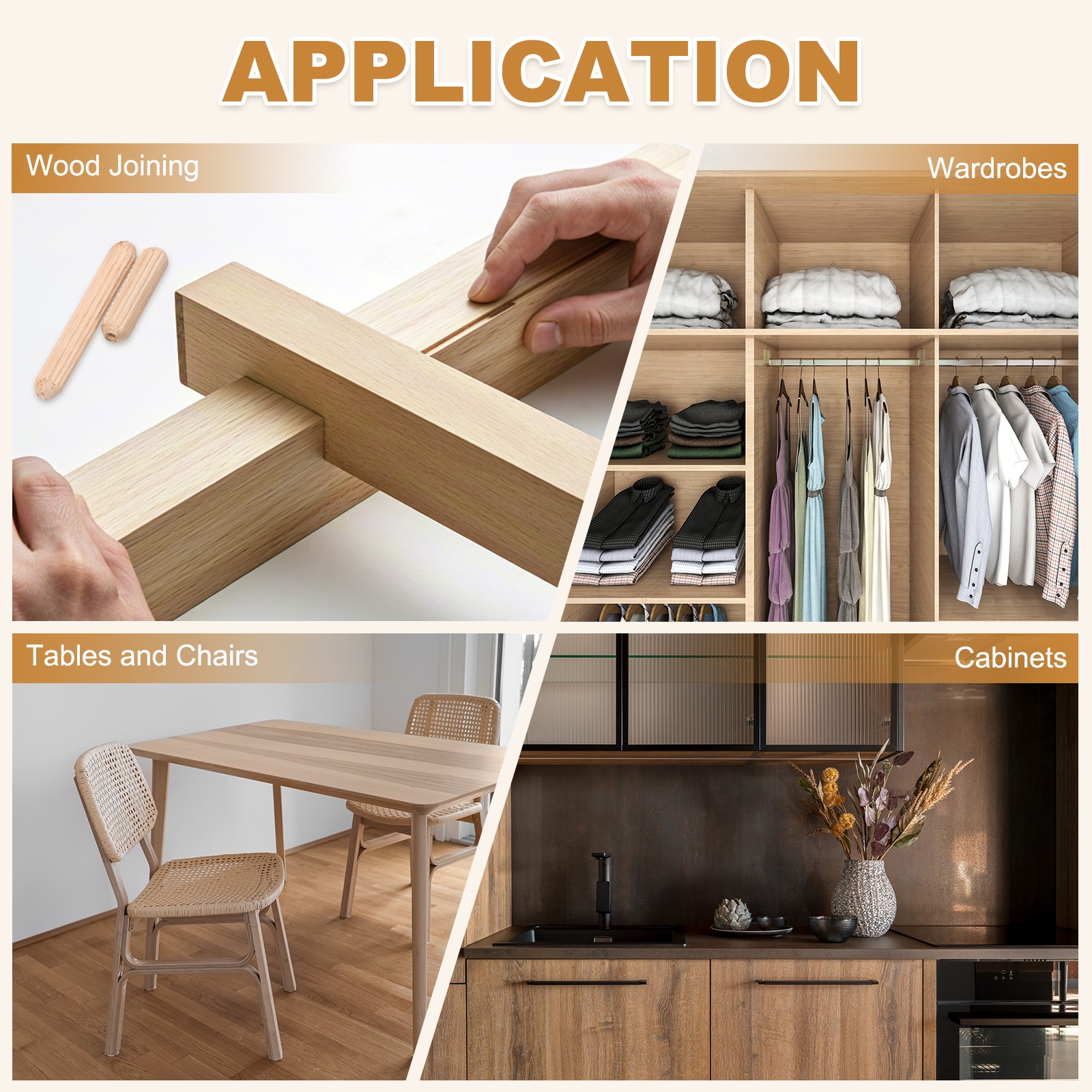 • 1/4 Wooden Dowel Pins, 168 Pcs 20mm Hardwood Crafts Furniture Woodwork
