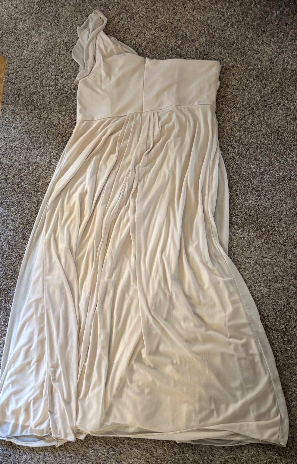 как выглядит DAVID BRIDAL 22W Champagne Beige Chiffon 1 SHOULDER GOWN Formal Bridesmaid Prom фото