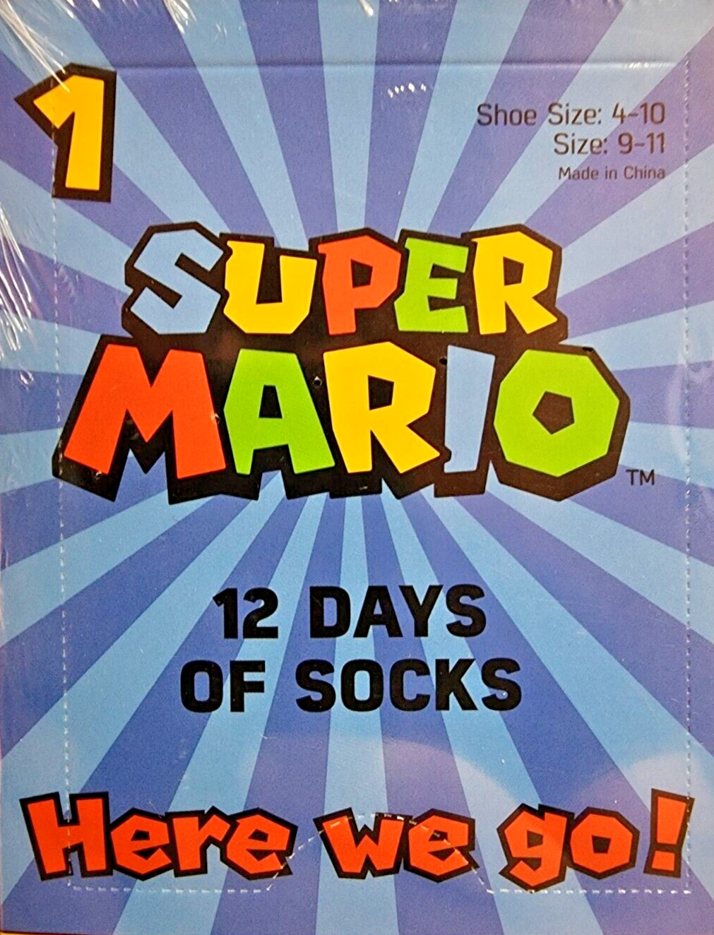 Super Mario 12 Days of Socks Advent Xmas Calendar Shoe Size 4-10