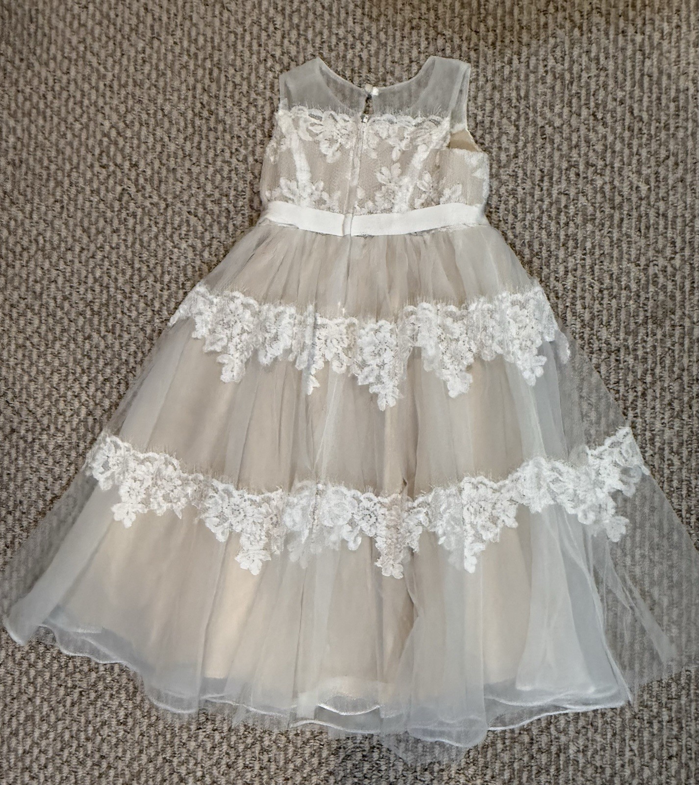 как выглядит David s Bridal Lace illusion Flower Girl Dress IVORY/CHAMPAGNE Size 5 фото