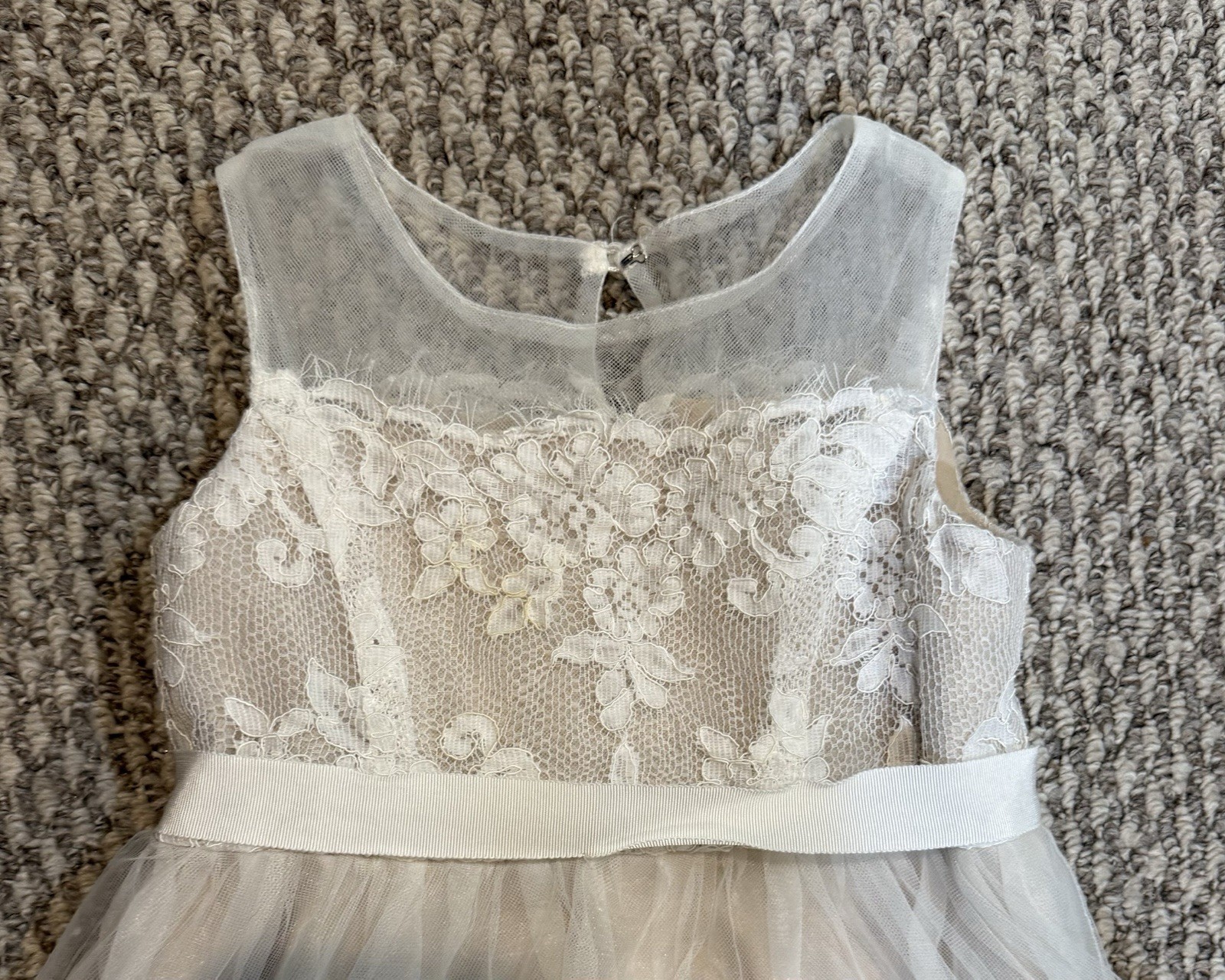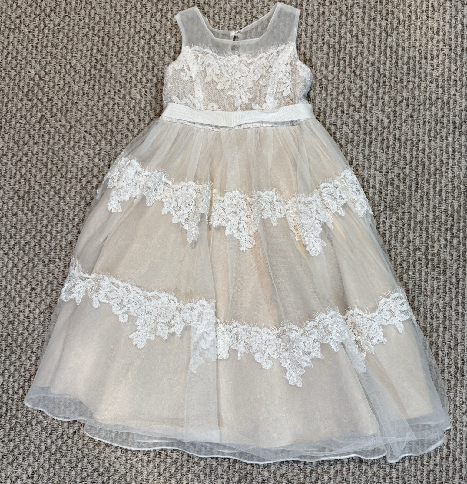 David s Bridal Lace illusion Flower Girl Dress IVORY/CHAMPAGNE Size 5