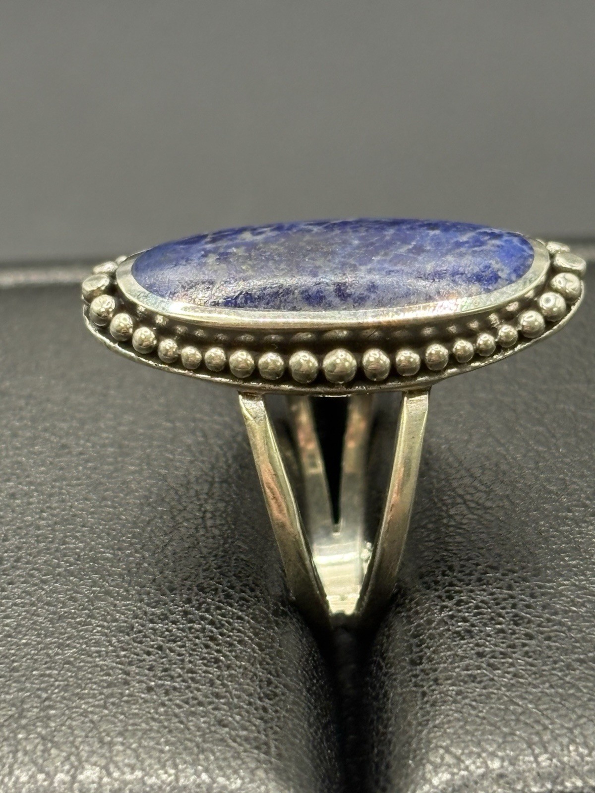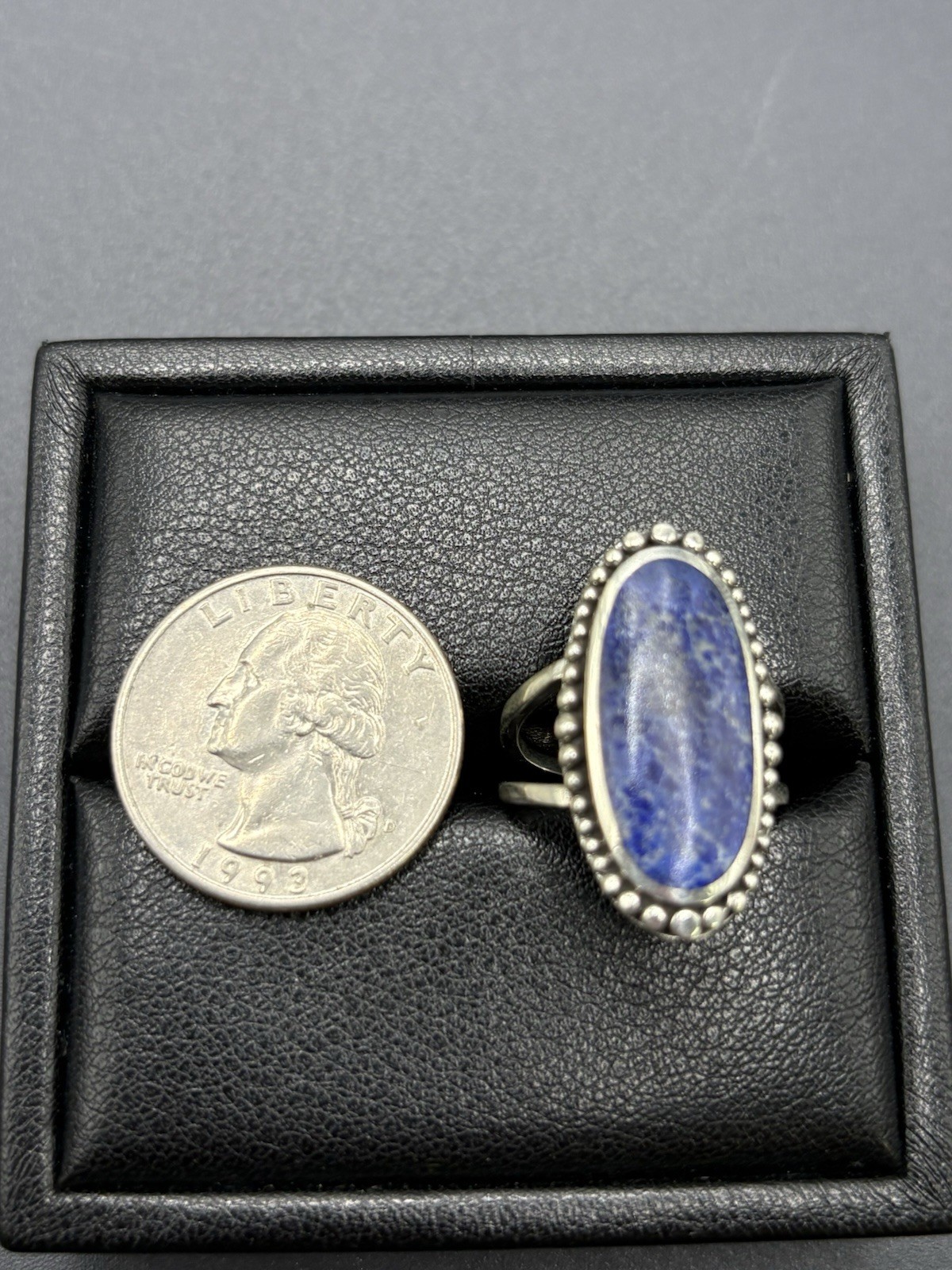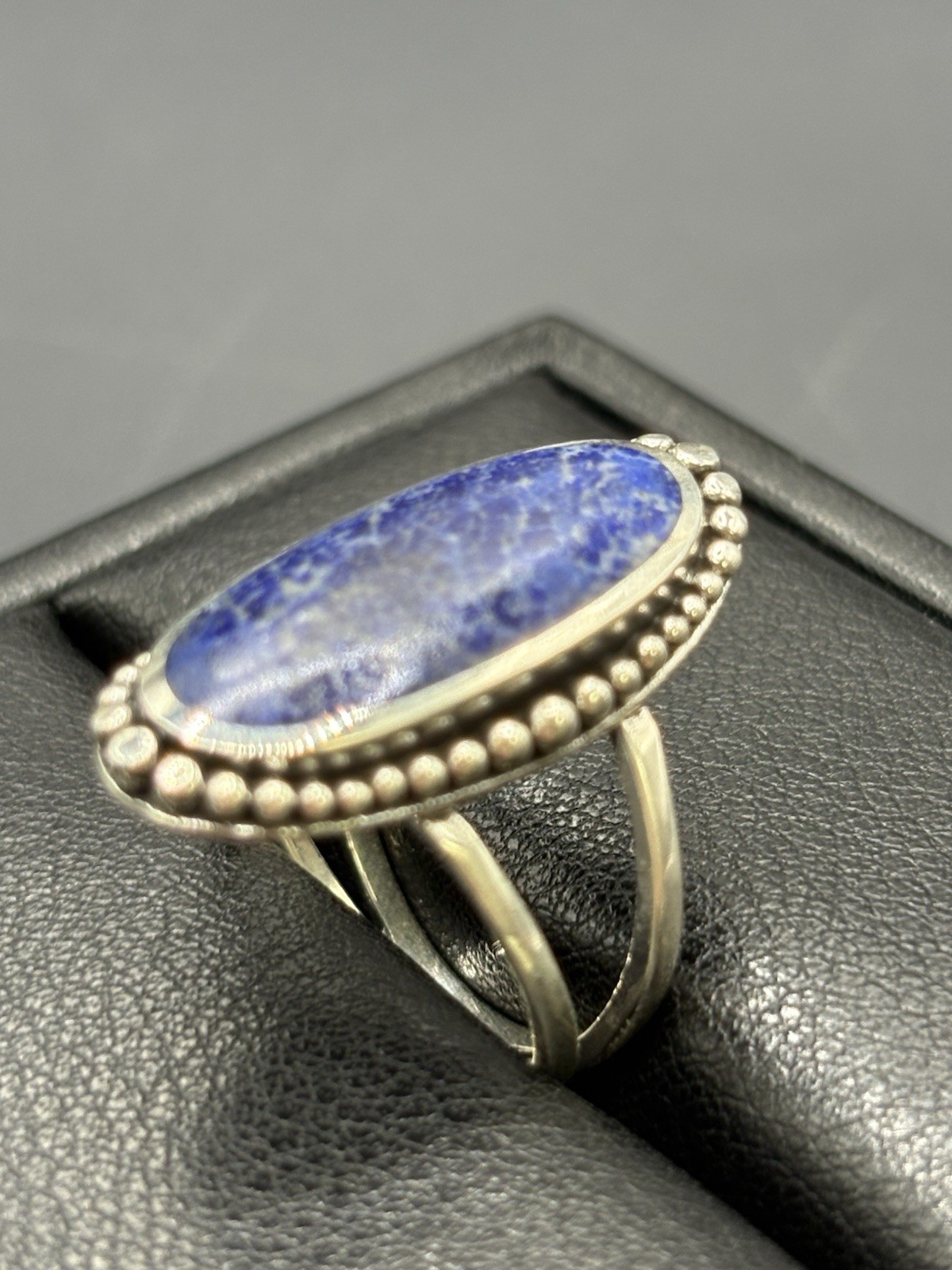 New Condition Sterling Silver Oval Oblong Lapis Ring Size 7
