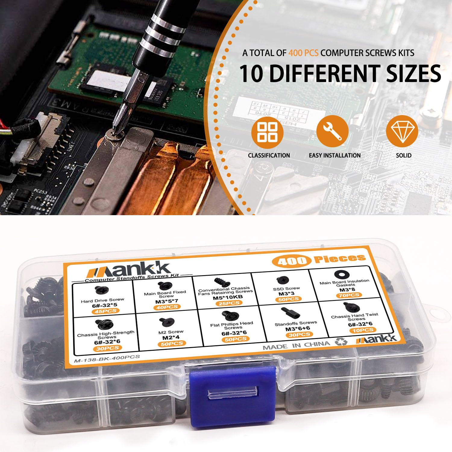 400Pcs PC Computer Screws Kit Motherboard Standoffs Case Fan SSD CD-ROM Set