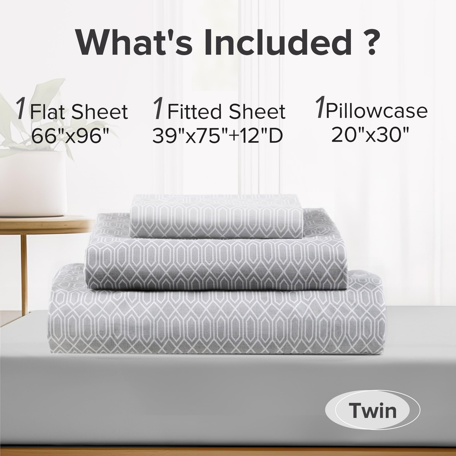 Included Components: Fitted Sheet, Flat Sheet, Pillowcase