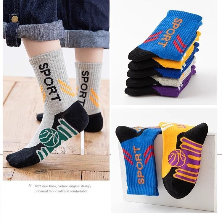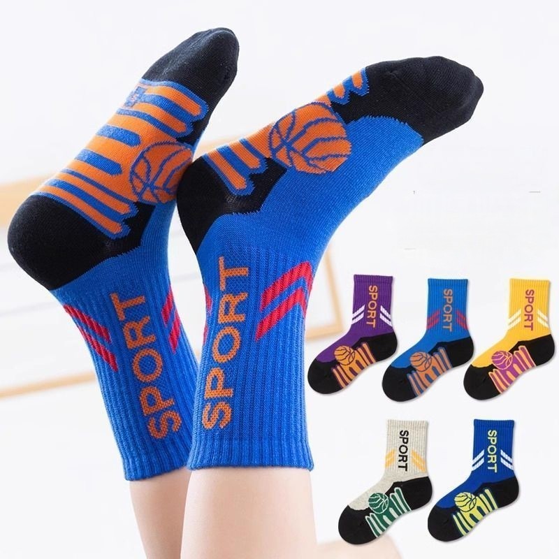 5X Kids Basketball Socks / Mid Calf Sports Socks / Athletic Boys Girls Socks