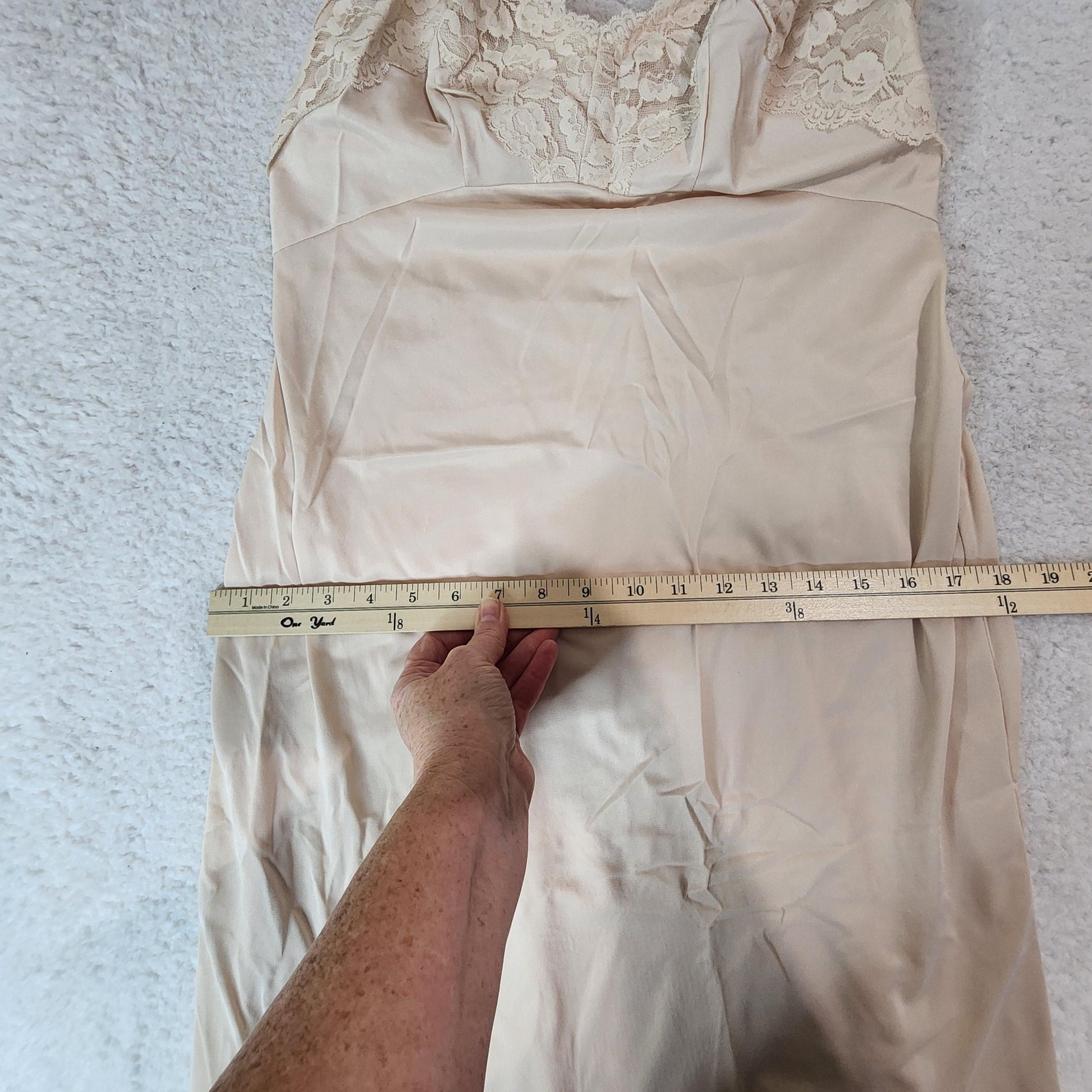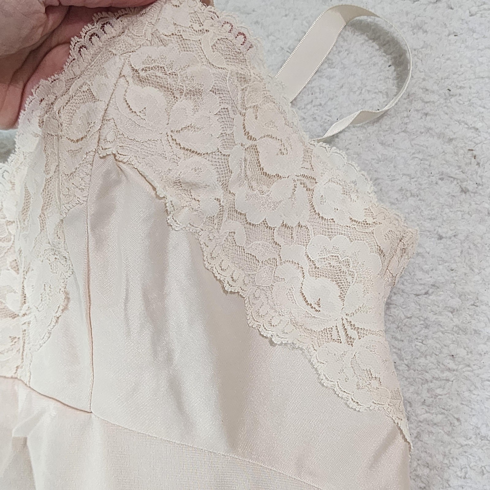 как выглядит Vintage Pinehurst Lingerie Slip Womens 36 Ivory Nylon Lace Trim Made USA 80s фото