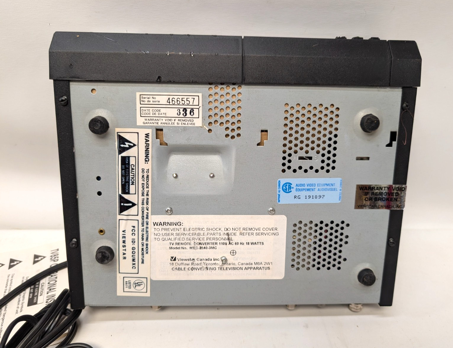 Viewstar TV85P 85-Channel Cable Converter Box w/ Remote Manual STD/HRC Switch
