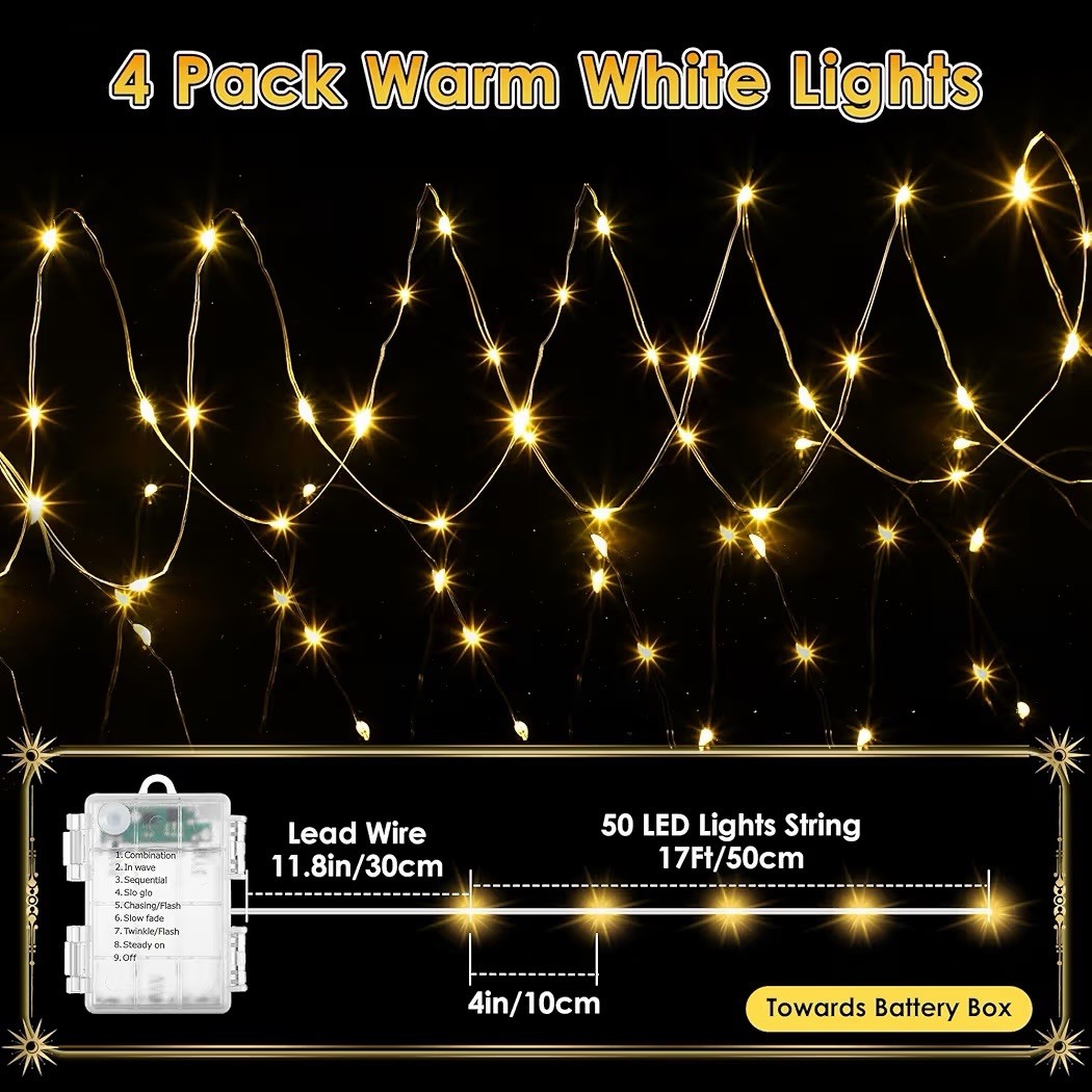 4 Pack Fairy Lights Battery Operated, 17ft 50 LED Waterproof String Lights
