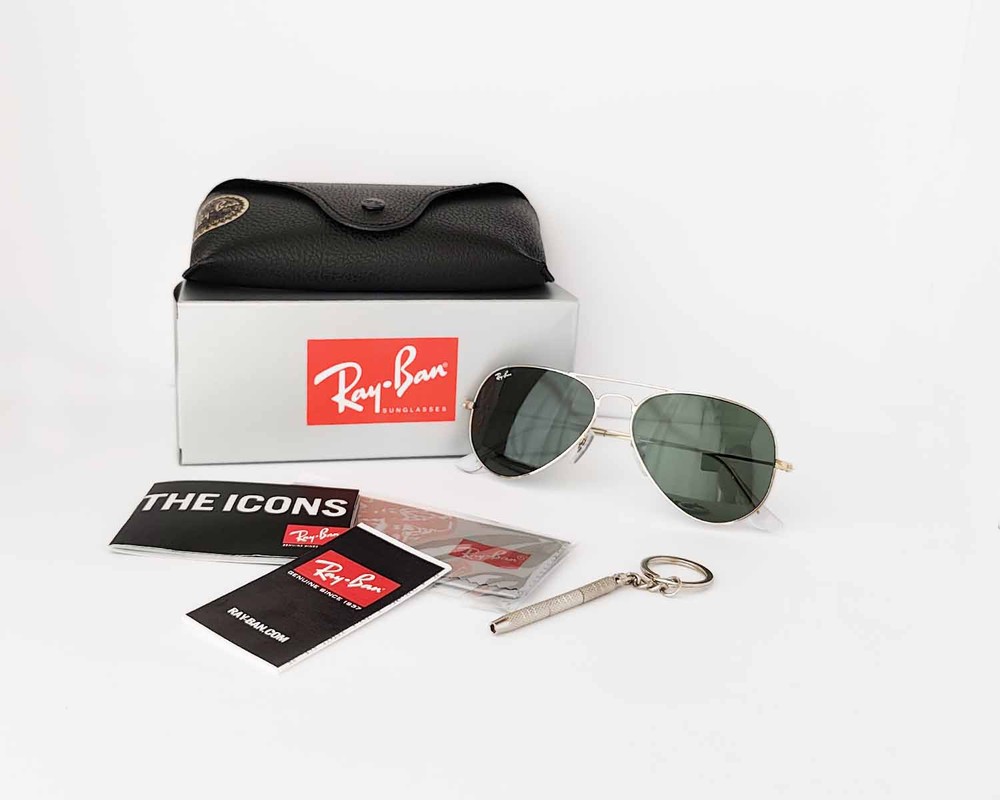 Ray-Ban Sunglasses RB3025 Aviator Classic Arista Gold Frame Green Lens 55mm