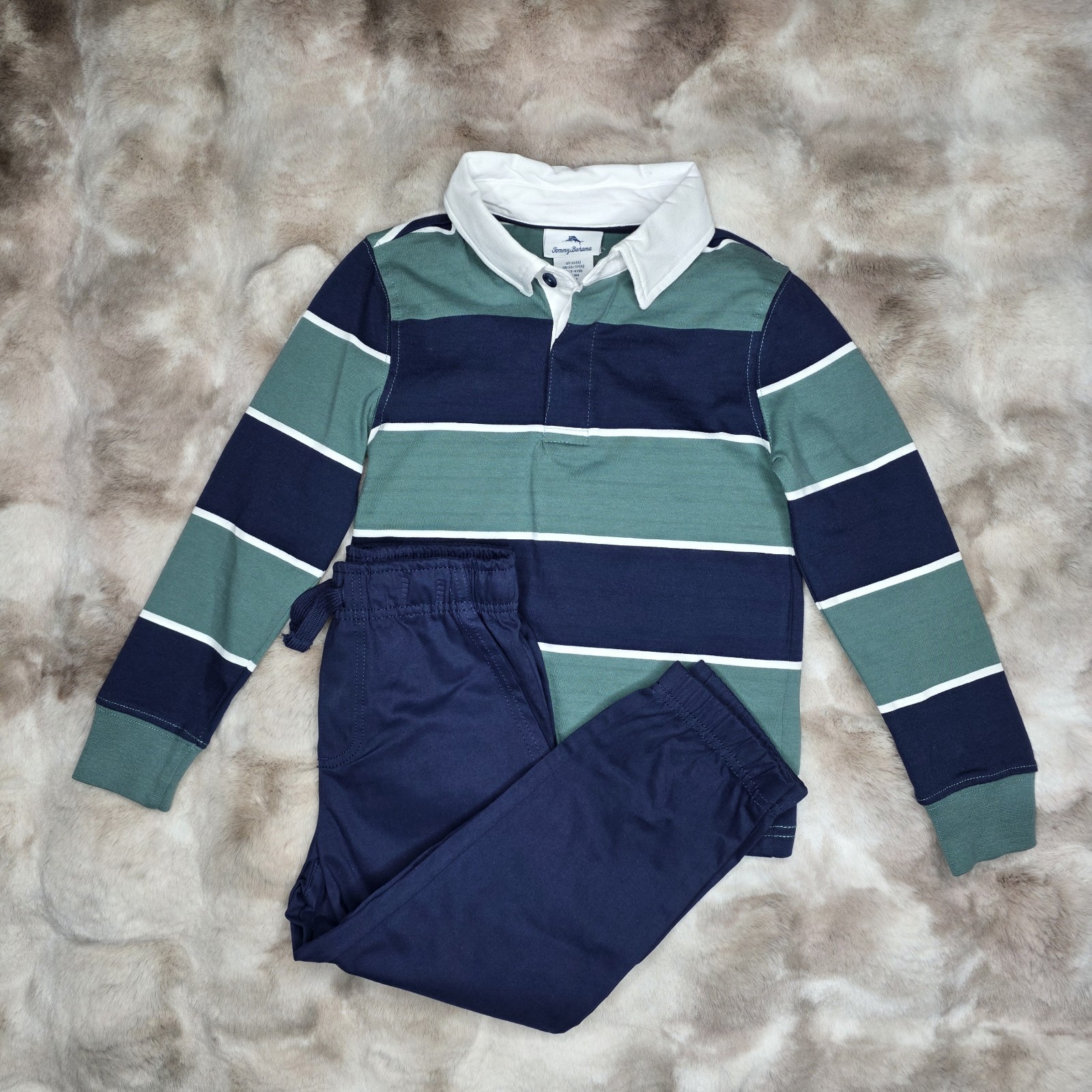 как выглядит Tommy Bahama Long Sleeve Striped Polo Shirt Jogger Pants Outfit Boys Sz 4 NWT фото