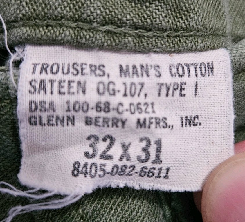 1968 OG-107 Vietnam Era Man's Trousers Cotton Sateen 32x31 U.S Army Jungle Pant