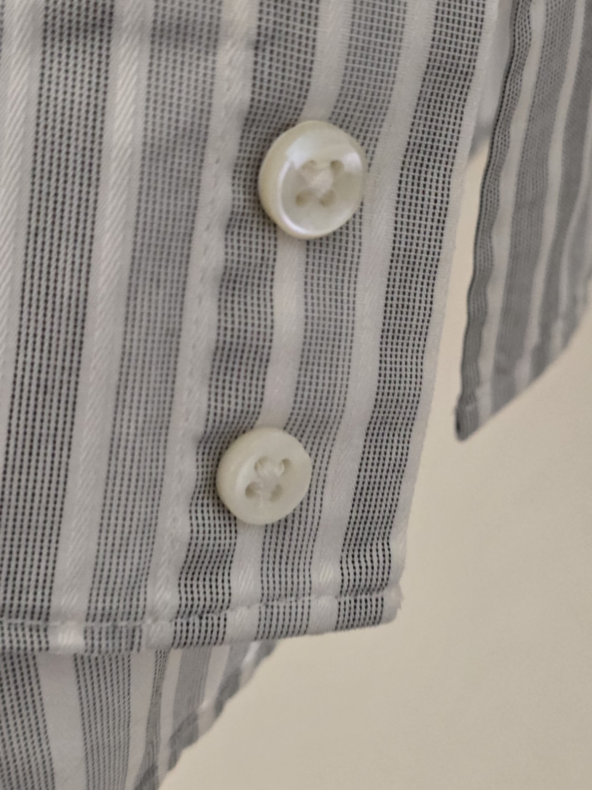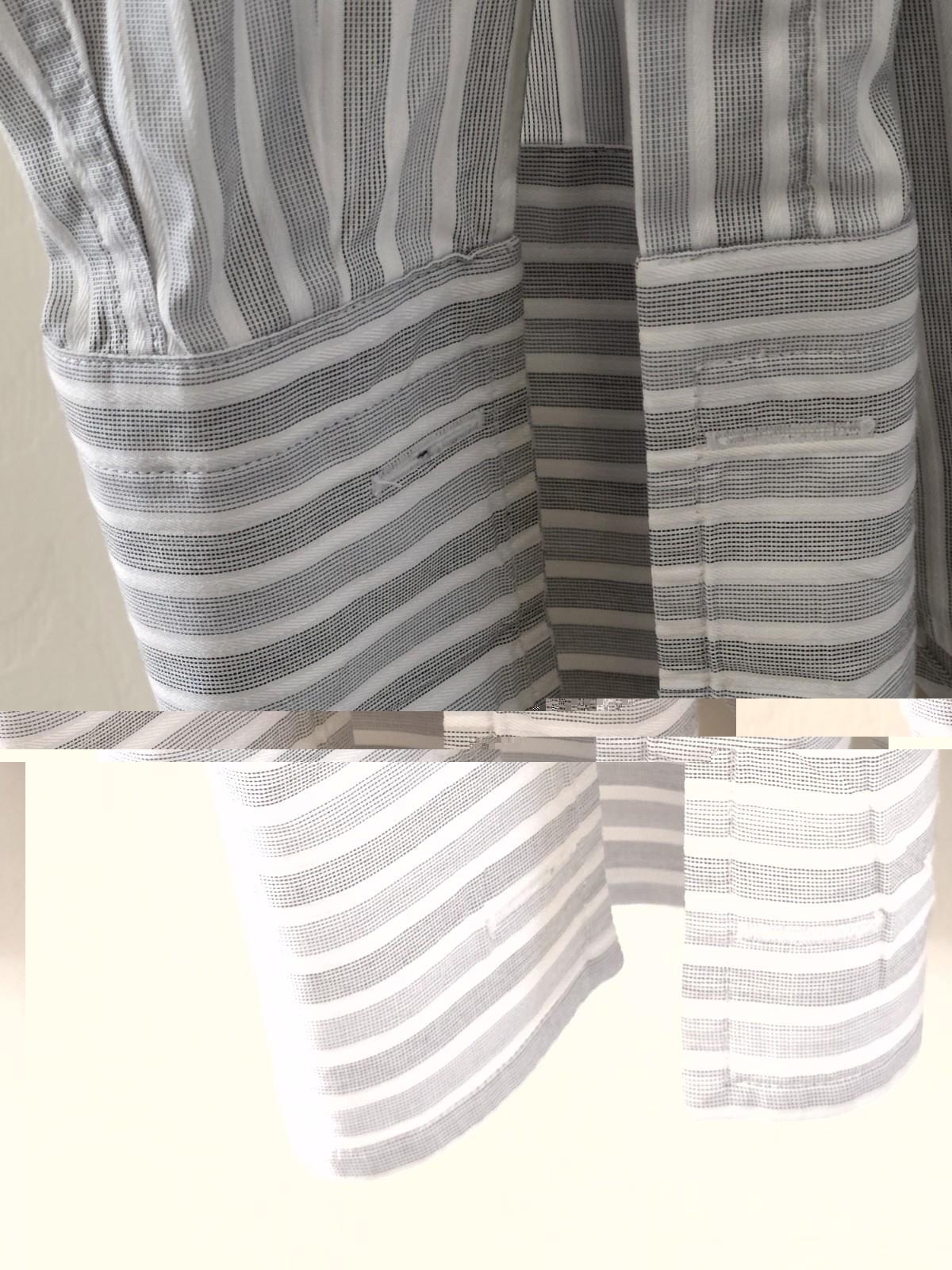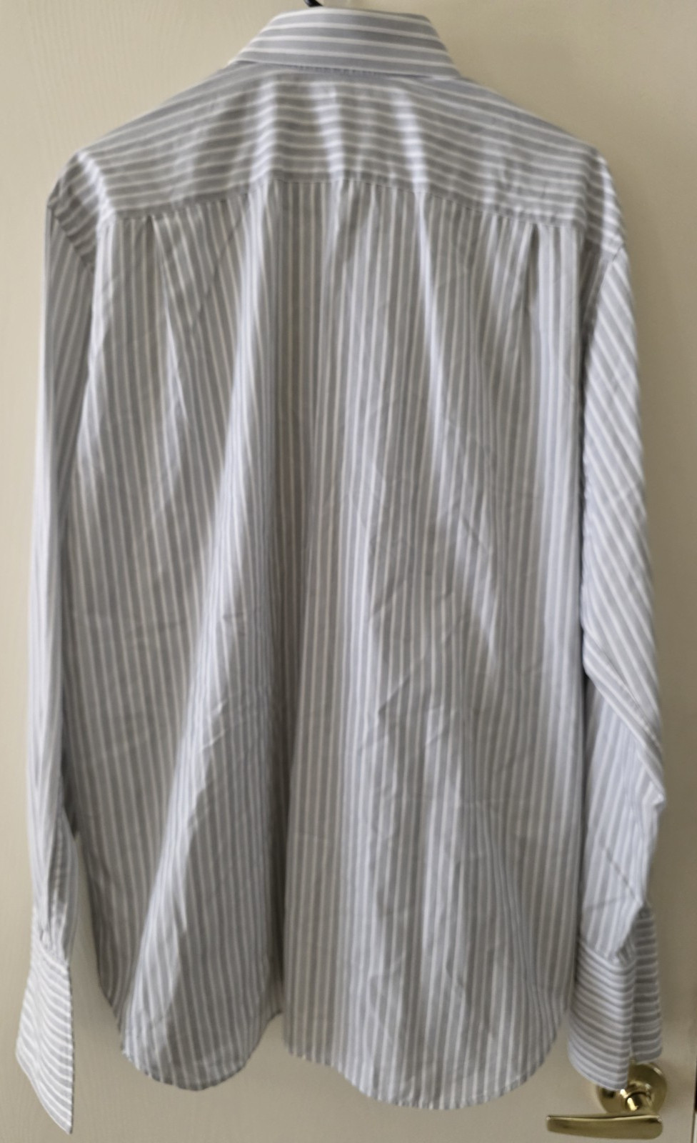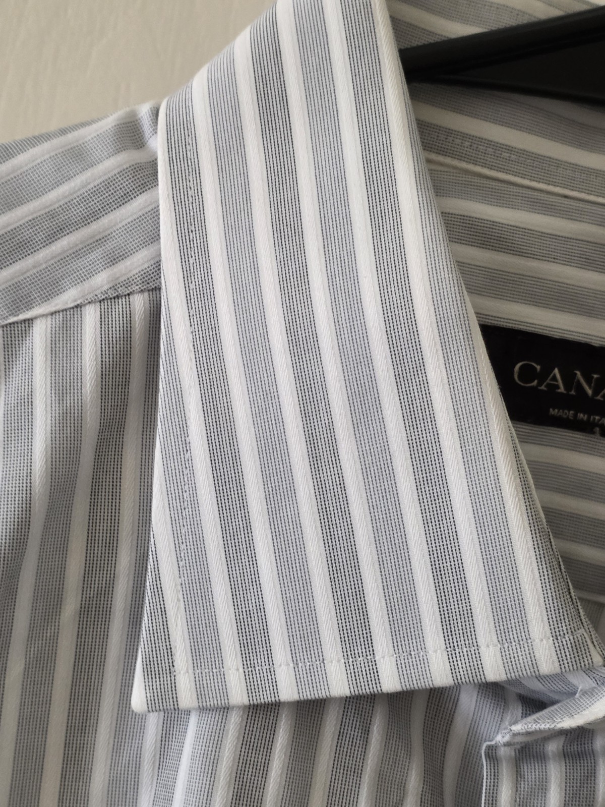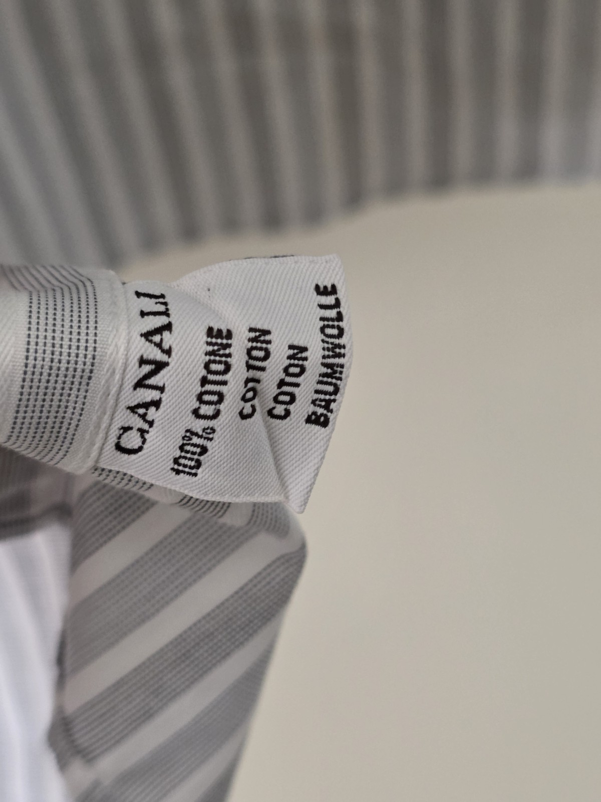 как выглядит CANALI Italy Dress Shirt Mens 17 - 34/35 White Black Striped French Cuffs фото