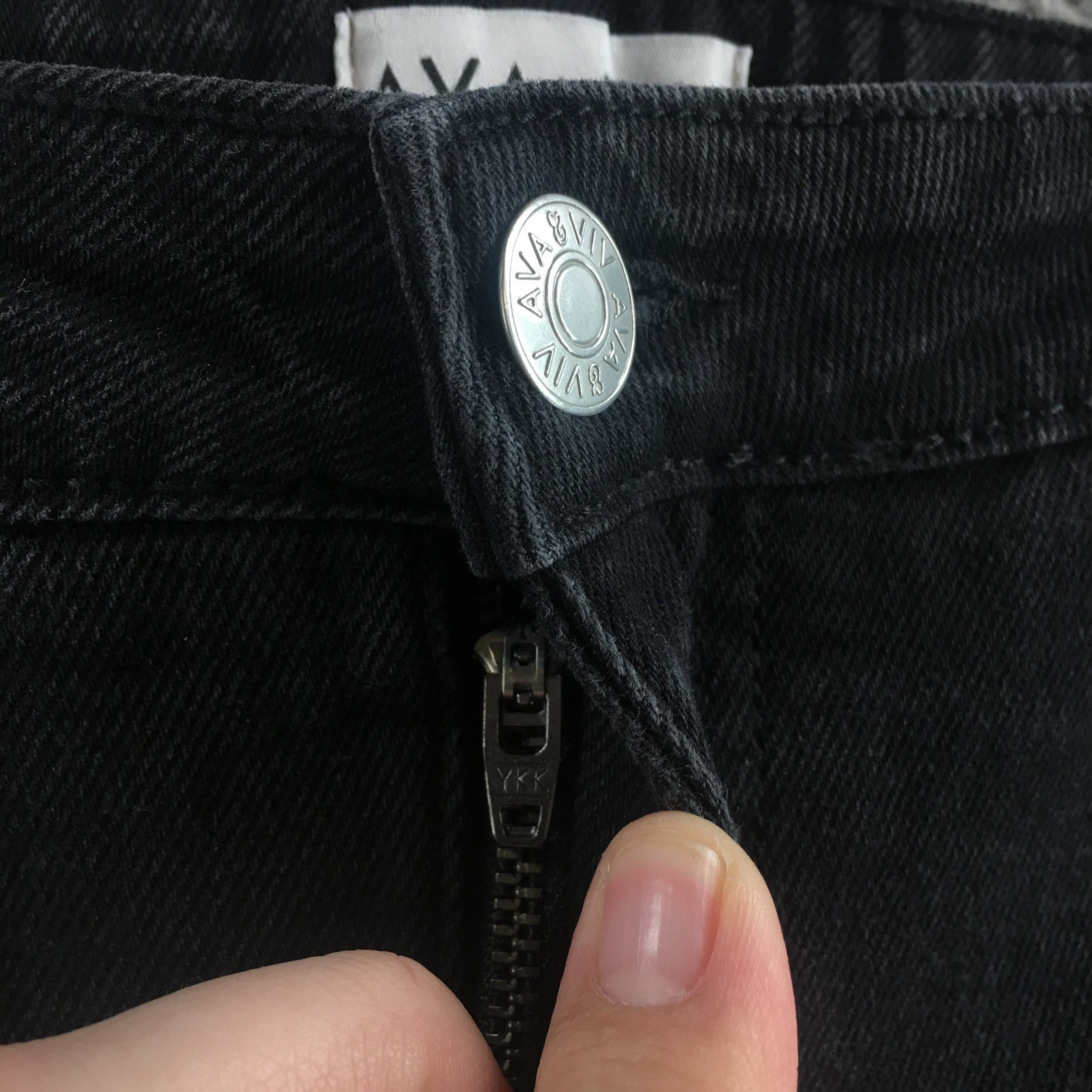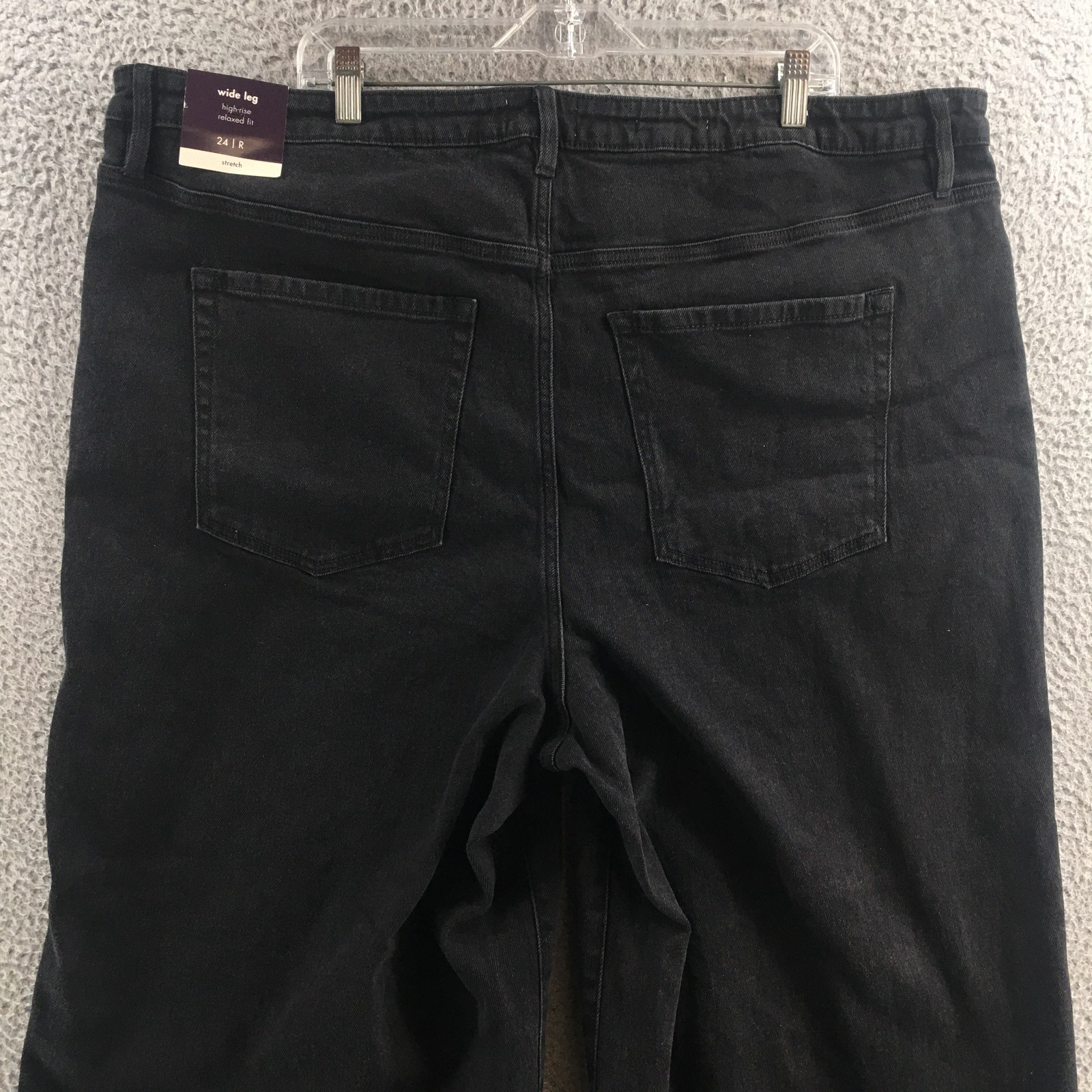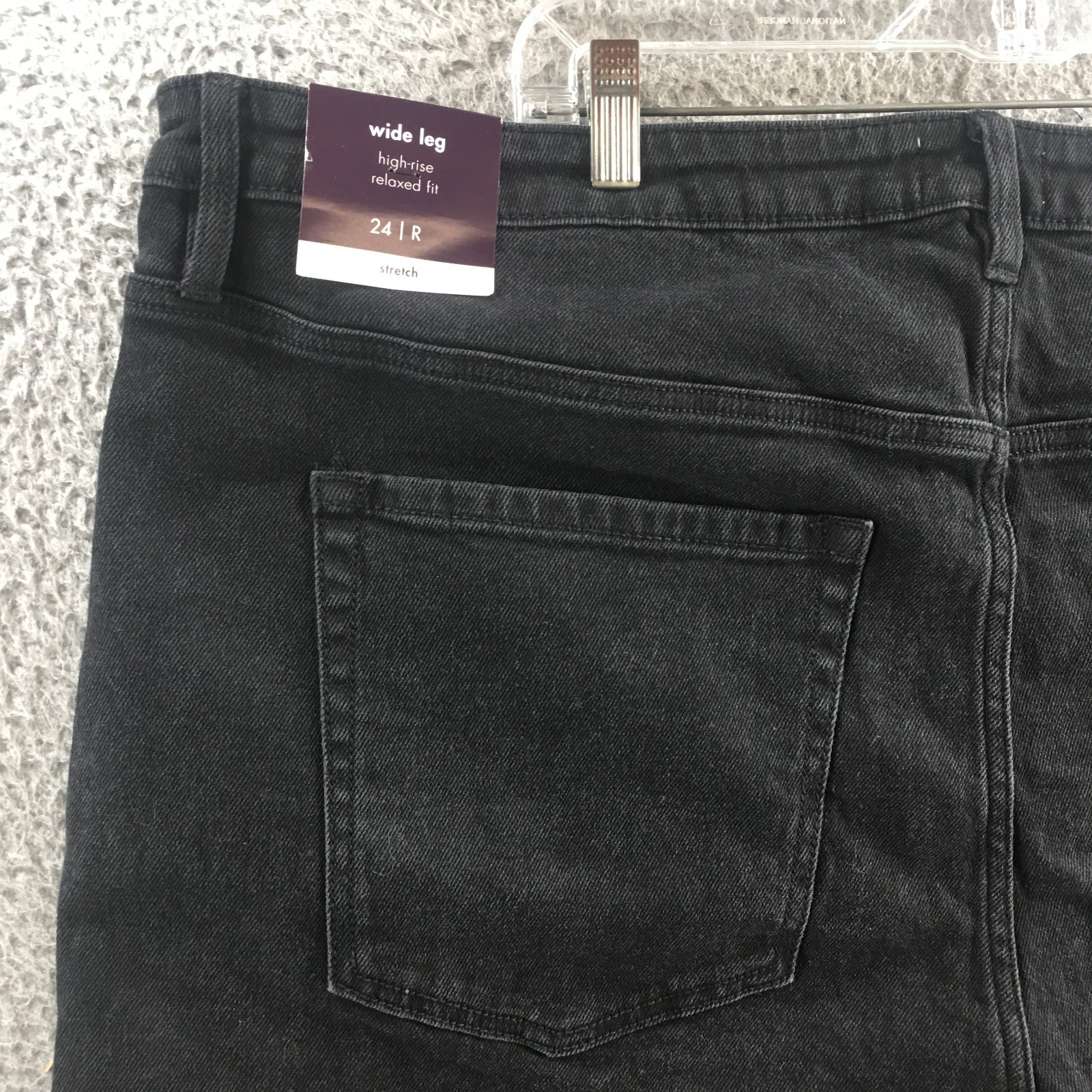 как выглядит Ava Viv High Rise Relaxed Fit Wide-Leg Jeans Womens 24R Black Denim Zip NEW фото