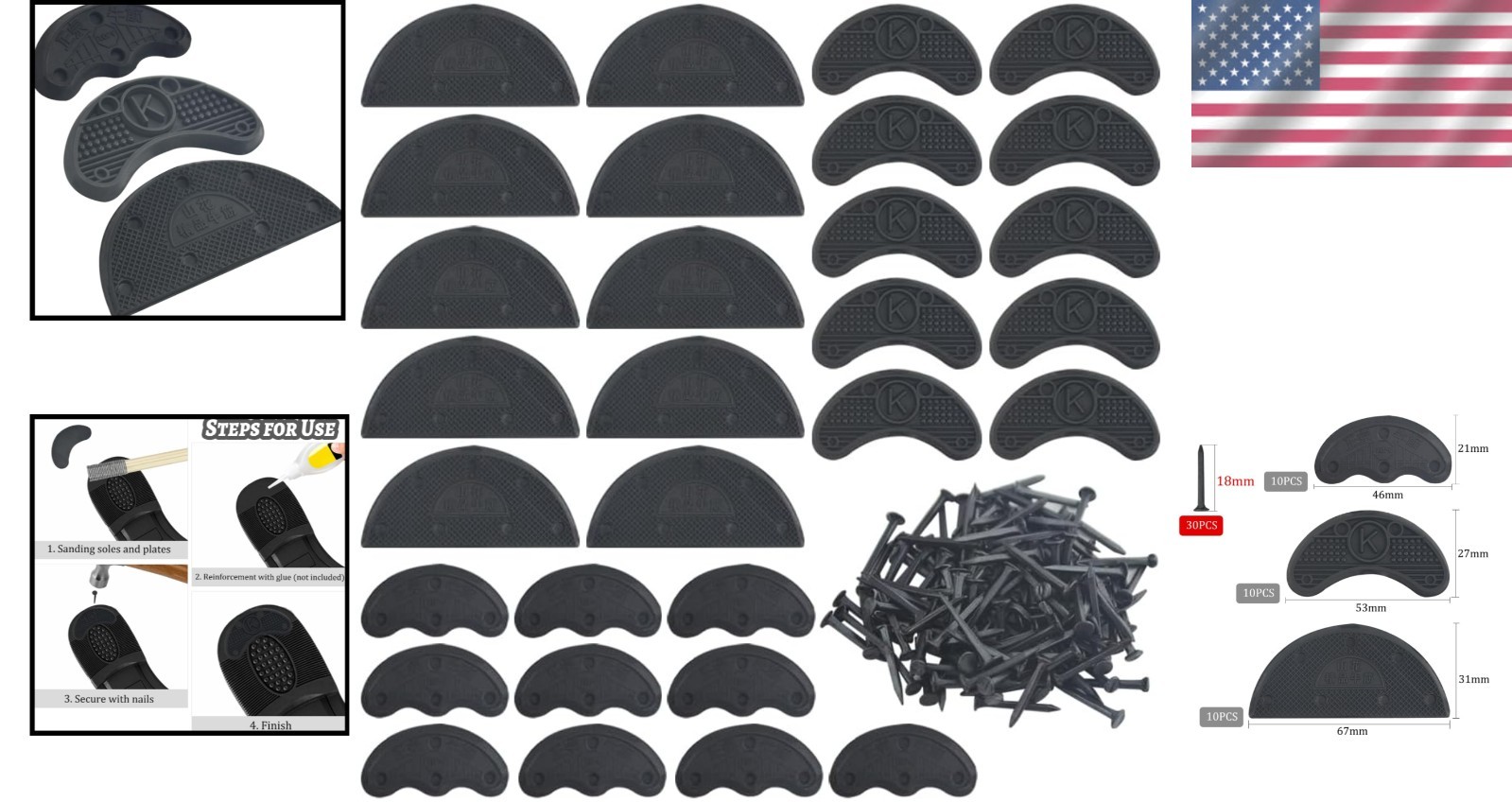 как выглядит 30PCS Versatile Black Heel Plates with Nails - Essential Shoe Repair Kit фото