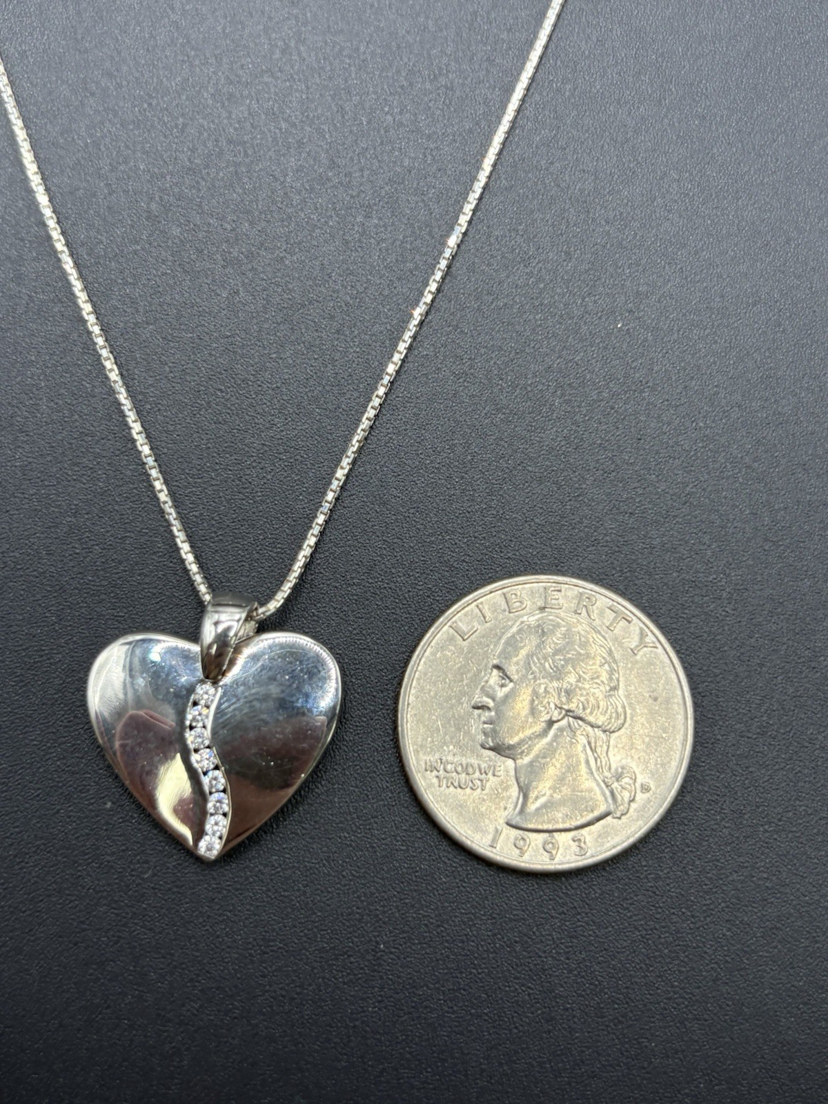 EUC Sterling Silver Cubic Zirconia 18 Heart Pendant Necklace 925 Y4