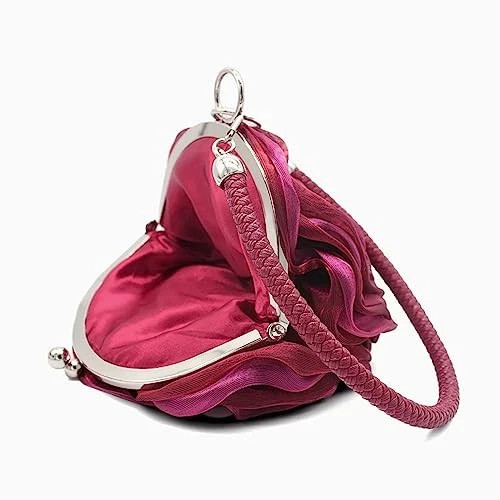 Rose Shaped Evening Bag Soft Satin Clutch Purse Floral Wristlet Handbag Maroon