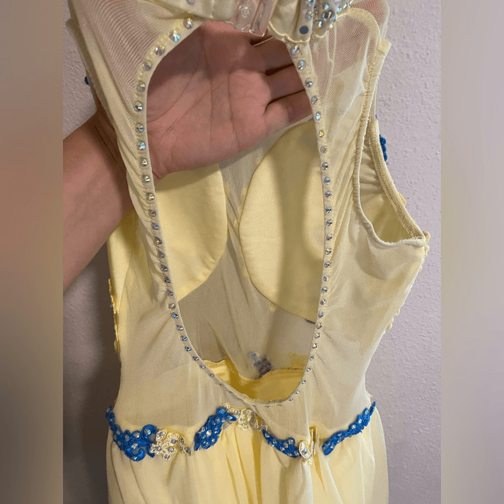 как выглядит Glamour solo dance costume 2 piece yellow blue embellished MC child фото