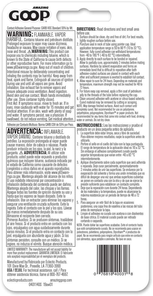 Amazing GOOP Glue Adhesive Waterproof Flexible Sealant for Vinyl Plastic Metal