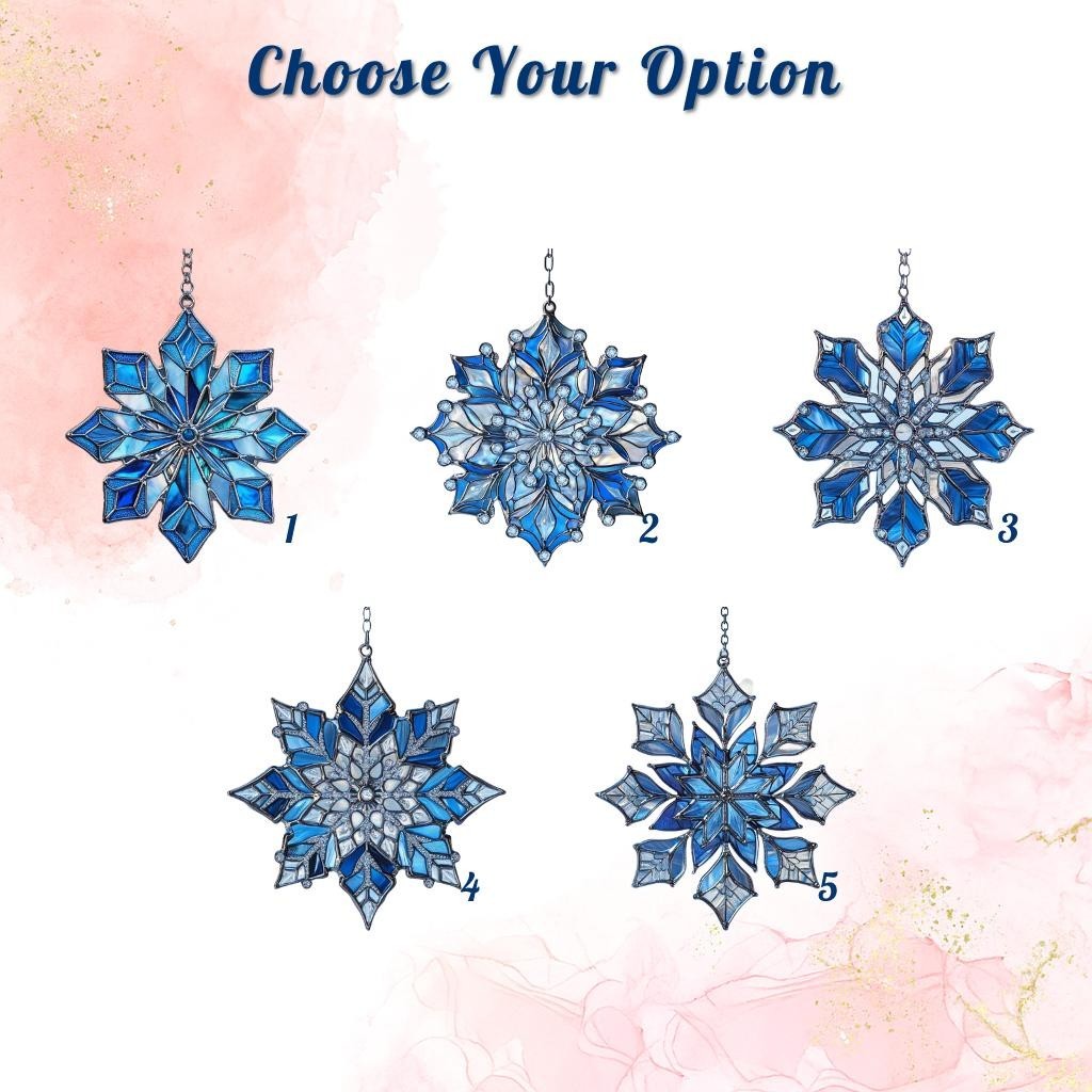 Blue Snowflake Acrylic Suncatcher Faux Stained Winter Window Holiday Decor