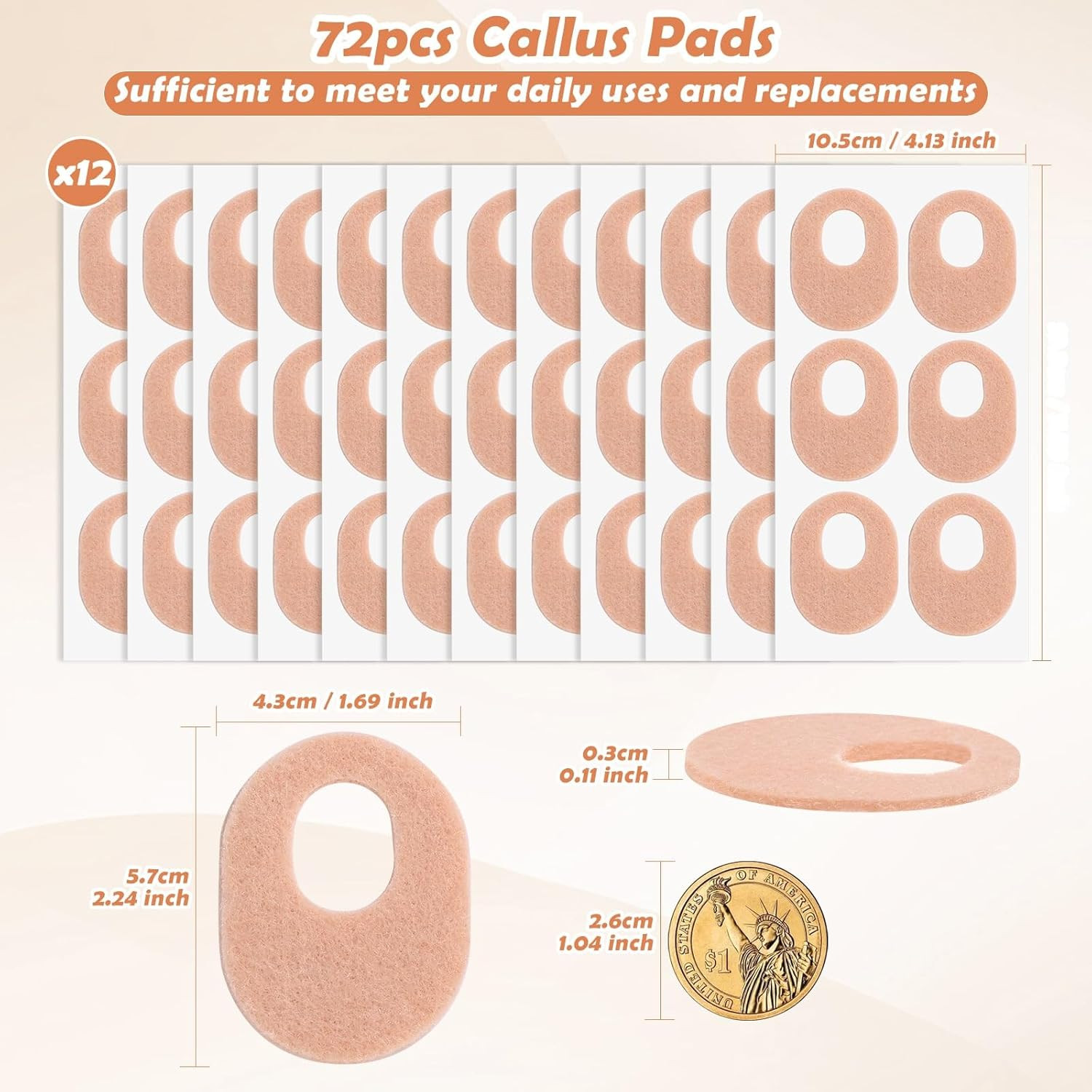 как выглядит 72 Pcs Callus Pads Soft Felt Callus Cushion Pads for Bottom of Foot Self Adhesiv фото