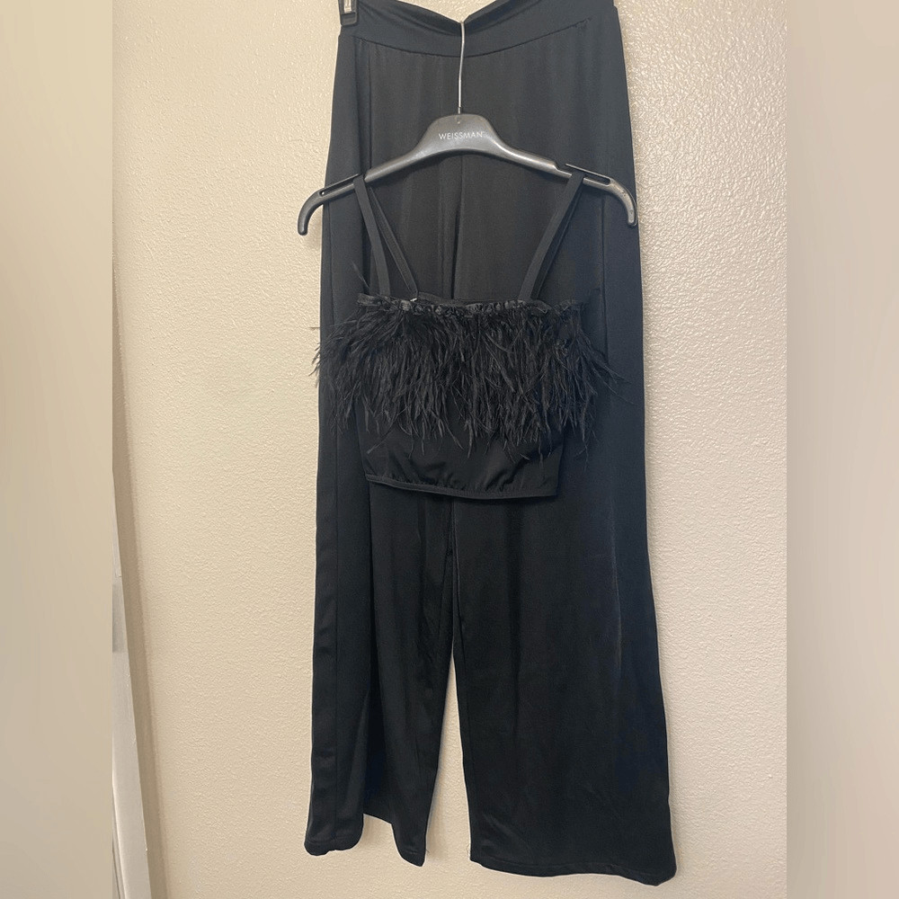 как выглядит Kelle dance black feather costume 2 piece wide leg pants top 2900 3806 teen фото