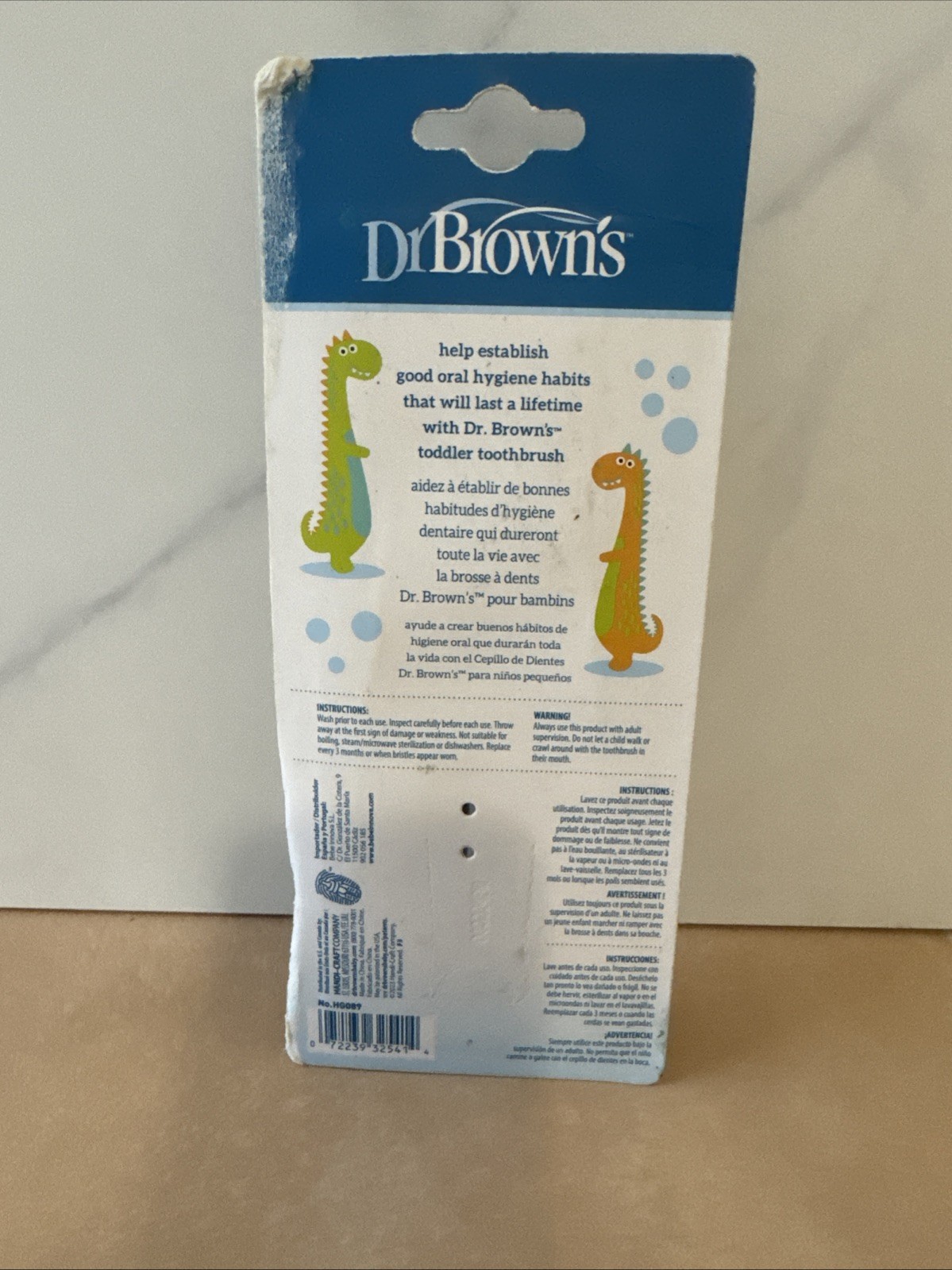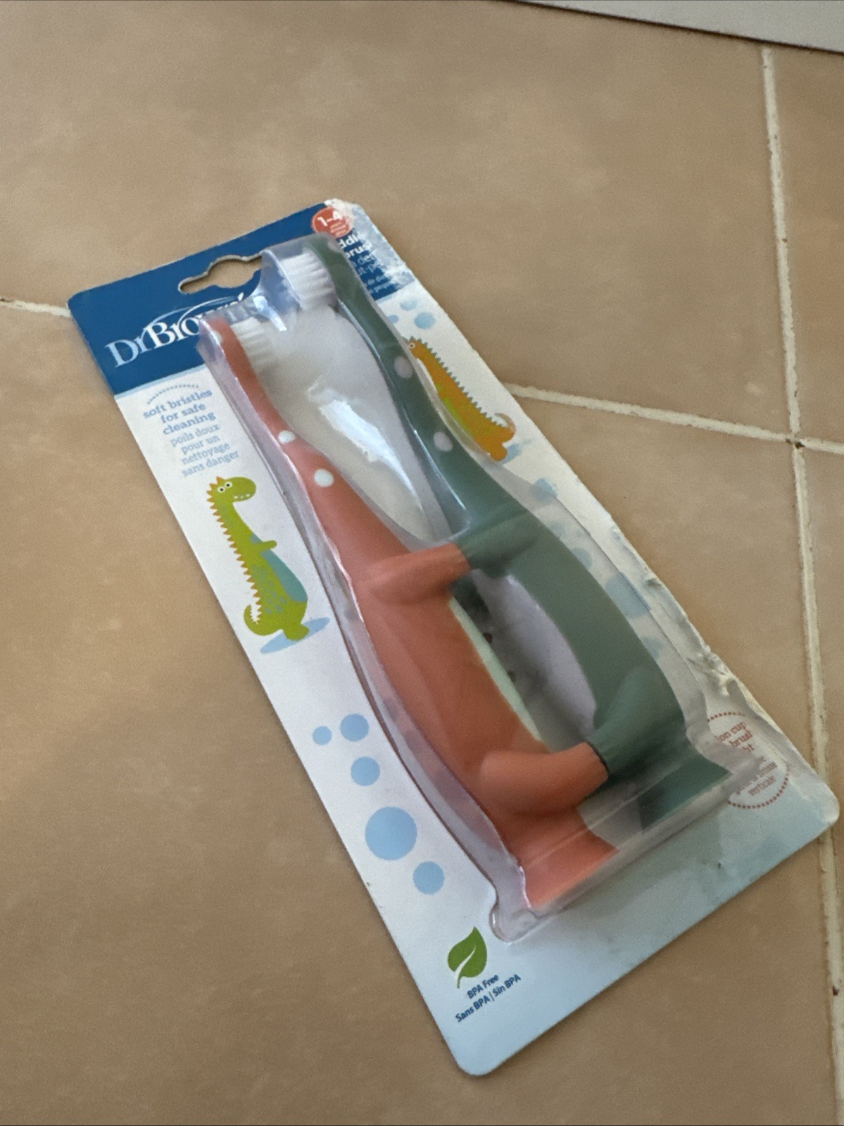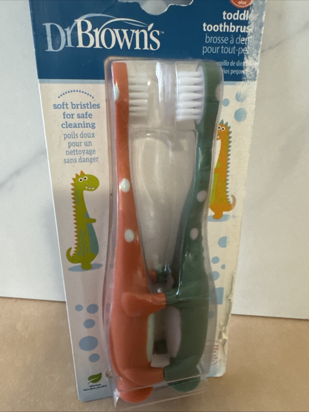 Dr. Brown's Baby and Toddler Toothbrush, Green and Orange Dinosaur 2-Pack. New