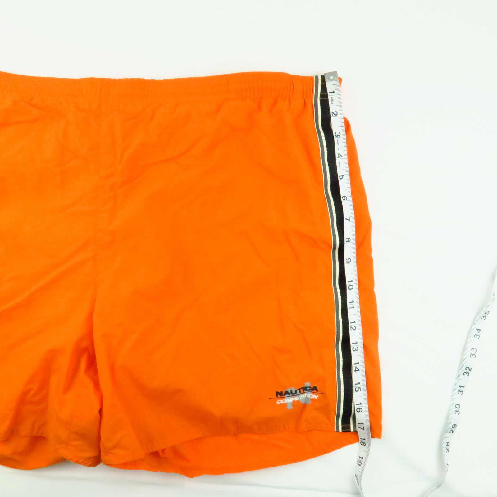 Vintage 90's Nautica Competition Swimming Trunks Spellout Orange XL Embroidered