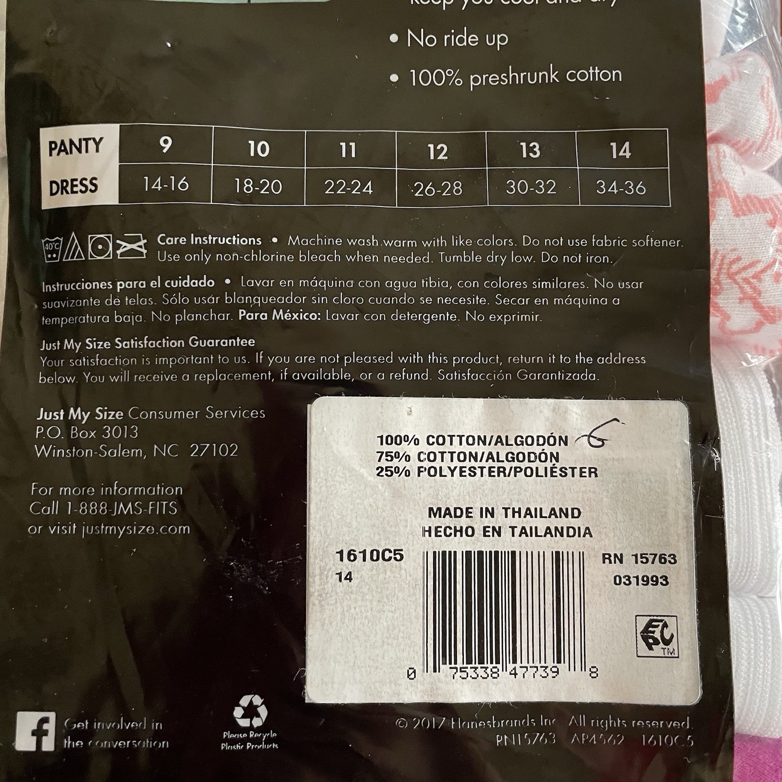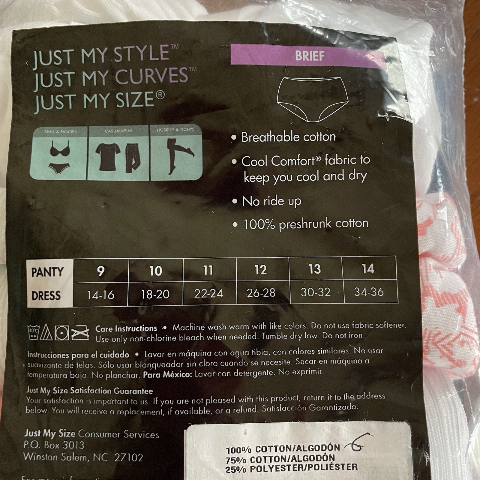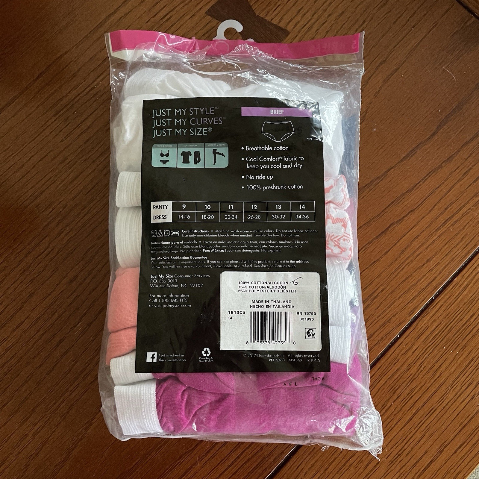как выглядит Underwear WM s SZ 14 Briefs Just My Size Breathable Cotton 4 Pair Open Package фото
