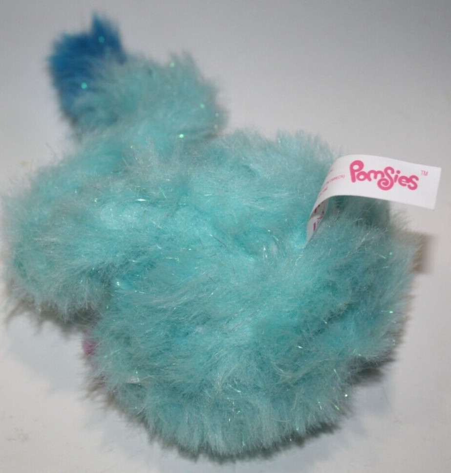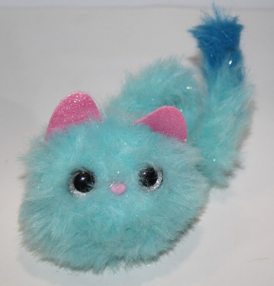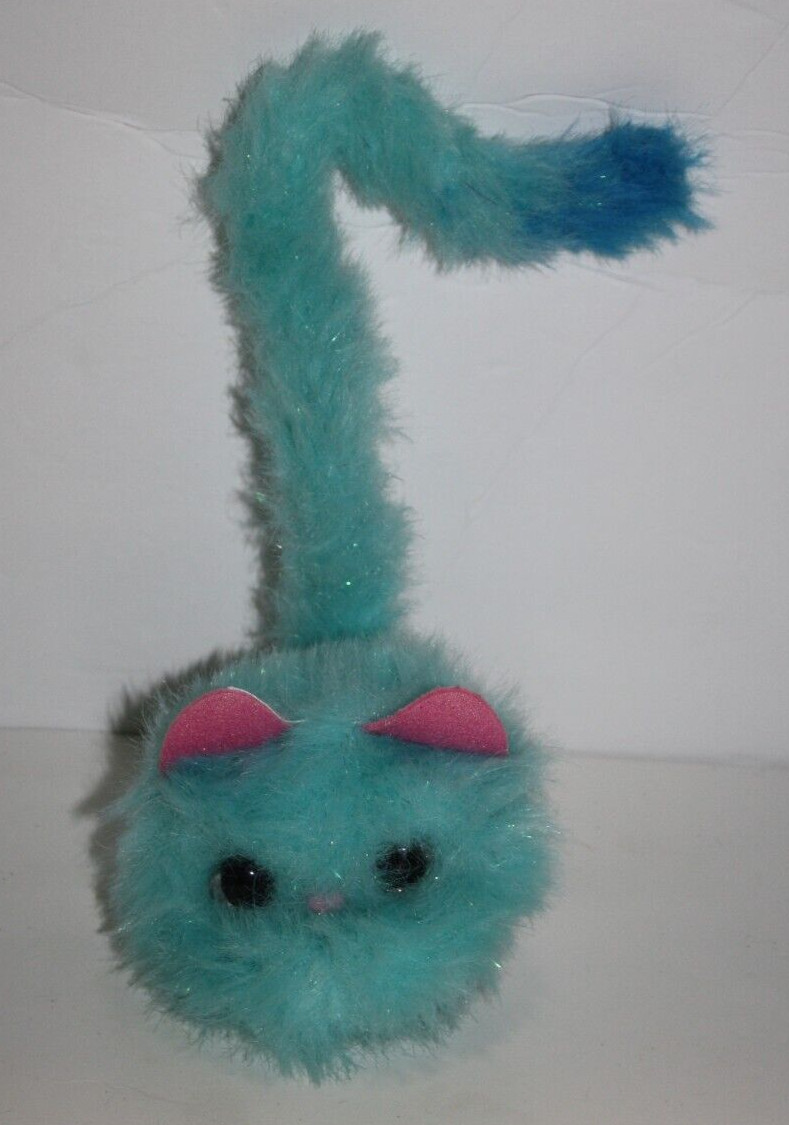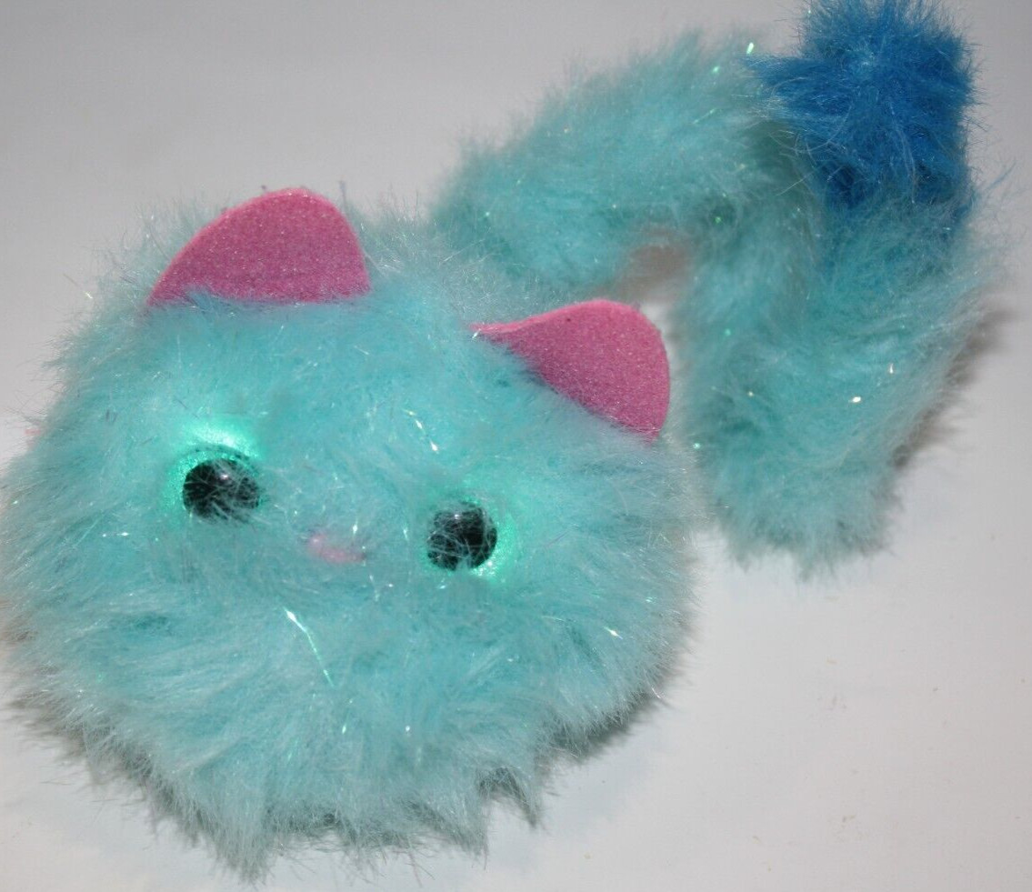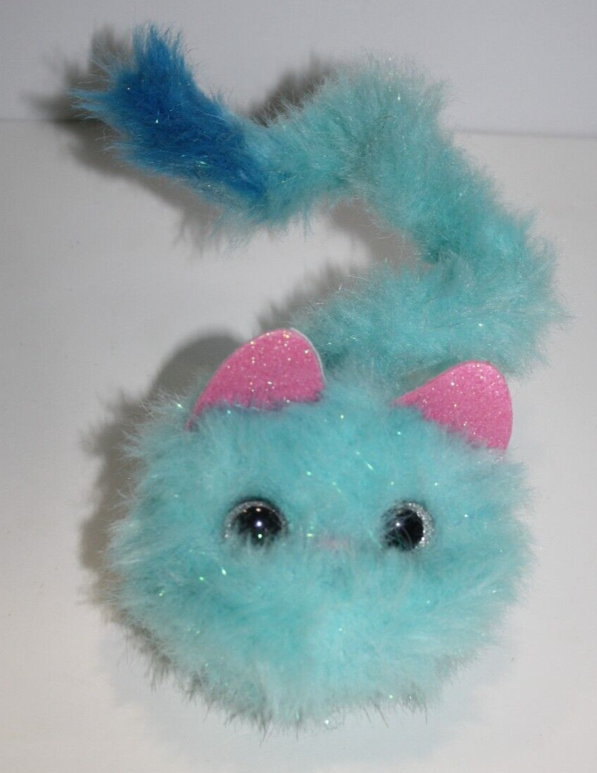 Pomsies Blue Stardust Interactive Cat 3 Plush Pom-Pom Pet Toy Pink Ear 14 Long