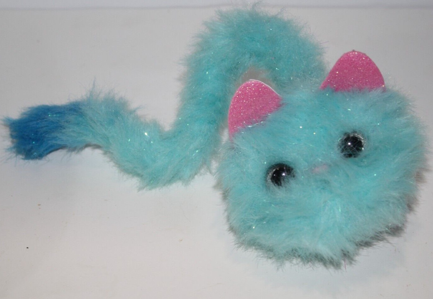 как выглядит Pomsies Blue Stardust Interactive Cat 3" Plush Pom-Pom Pet Toy Pink Ear 14" Long фото