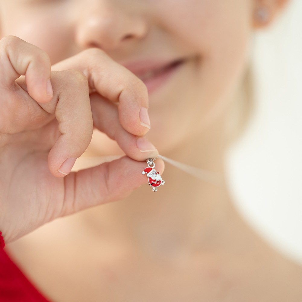 как выглядит Christmas Santa Kids / Girls Pendant/Necklace Enamel - Sterling Silver фото