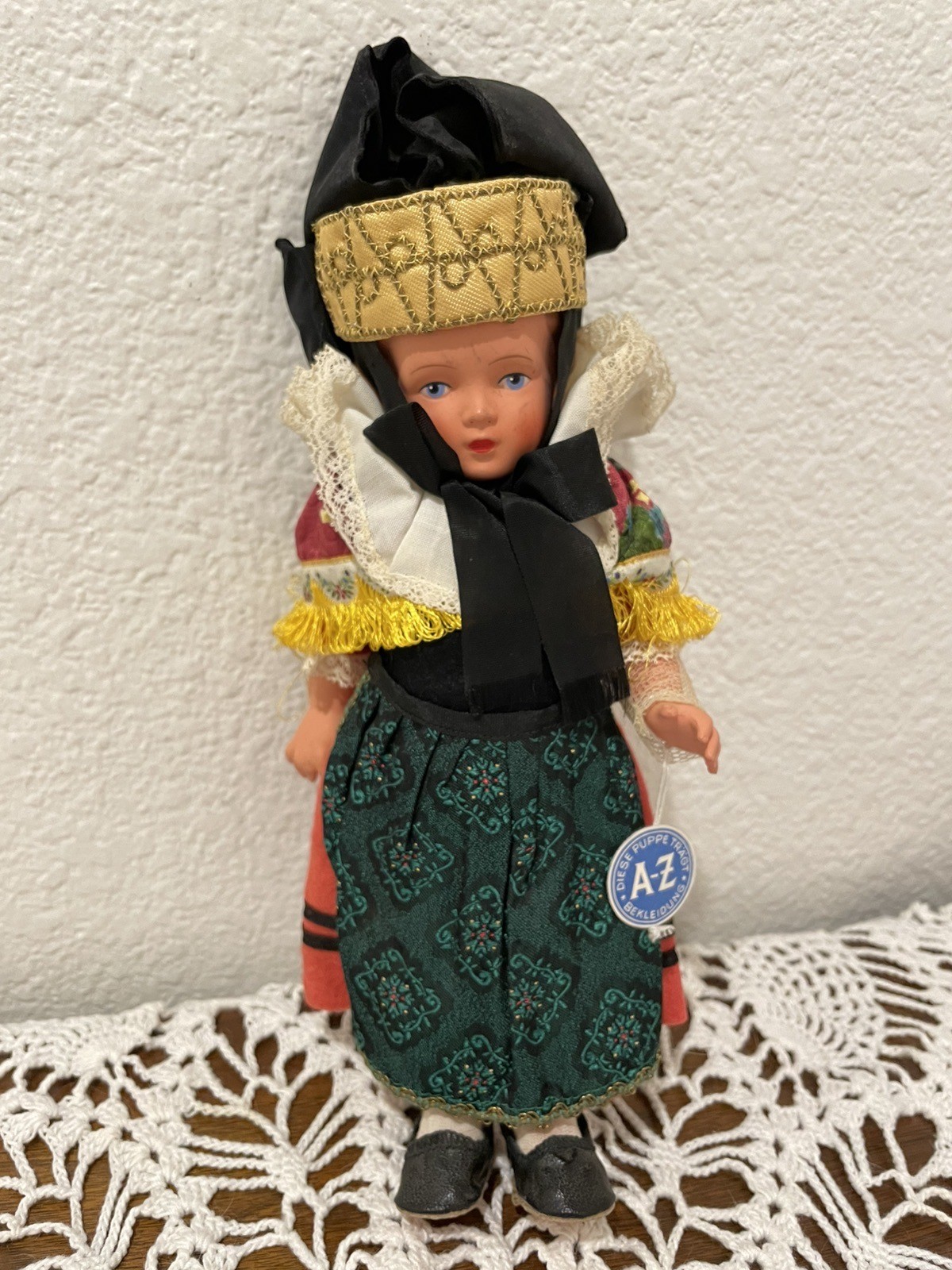 Vintage Doll From Germany With A-Z Tag. Fully Dressed-Celluloid Measures 10 Inch